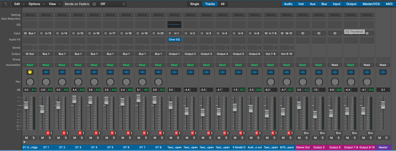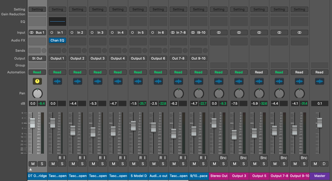 Tracks 7/8 and 9/10 stereo tracks coming in from Tascam