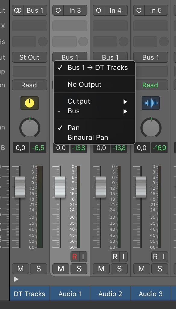 Pressing Track 3 on DT sends output to DT1, DT2, DT5