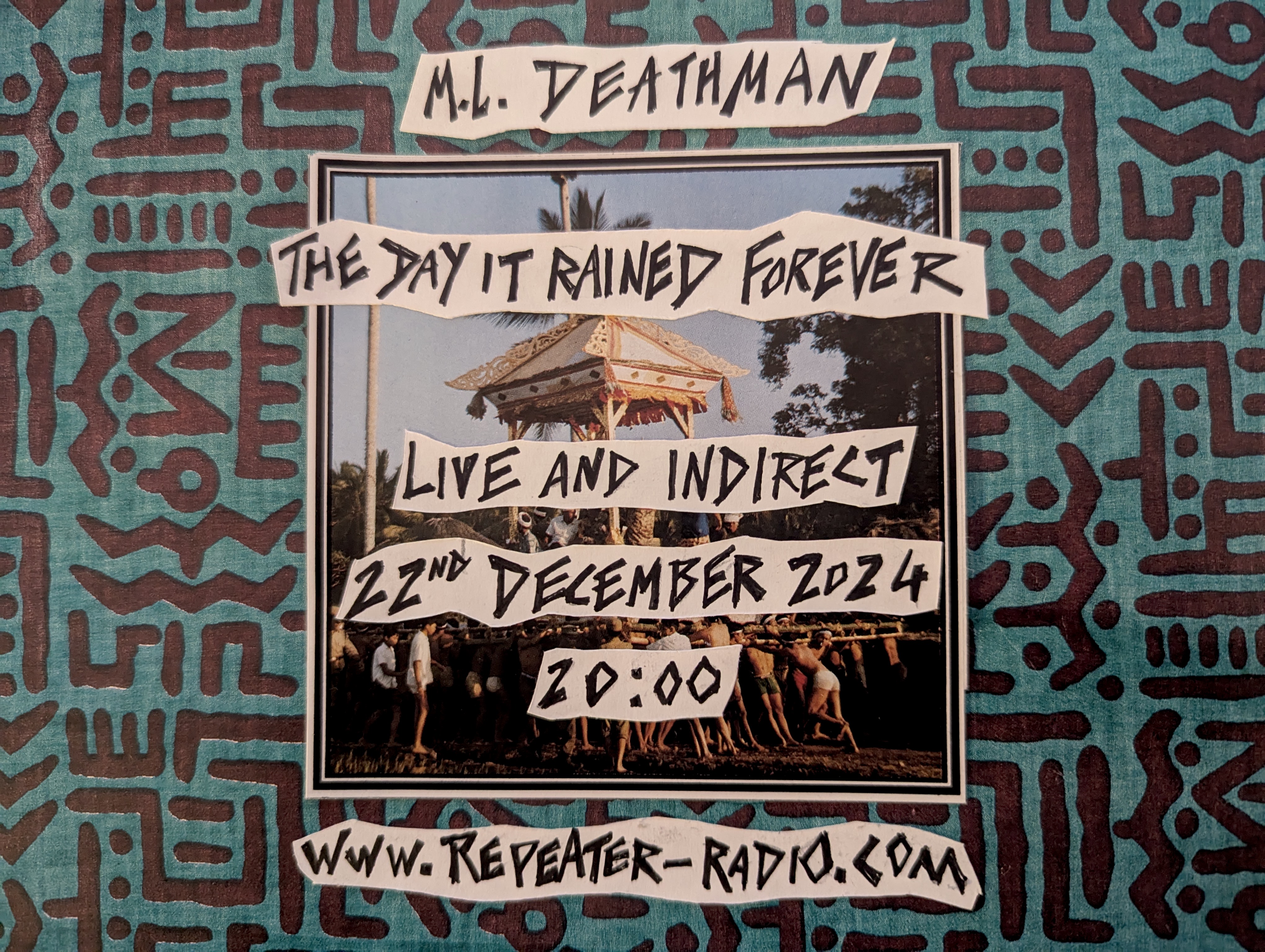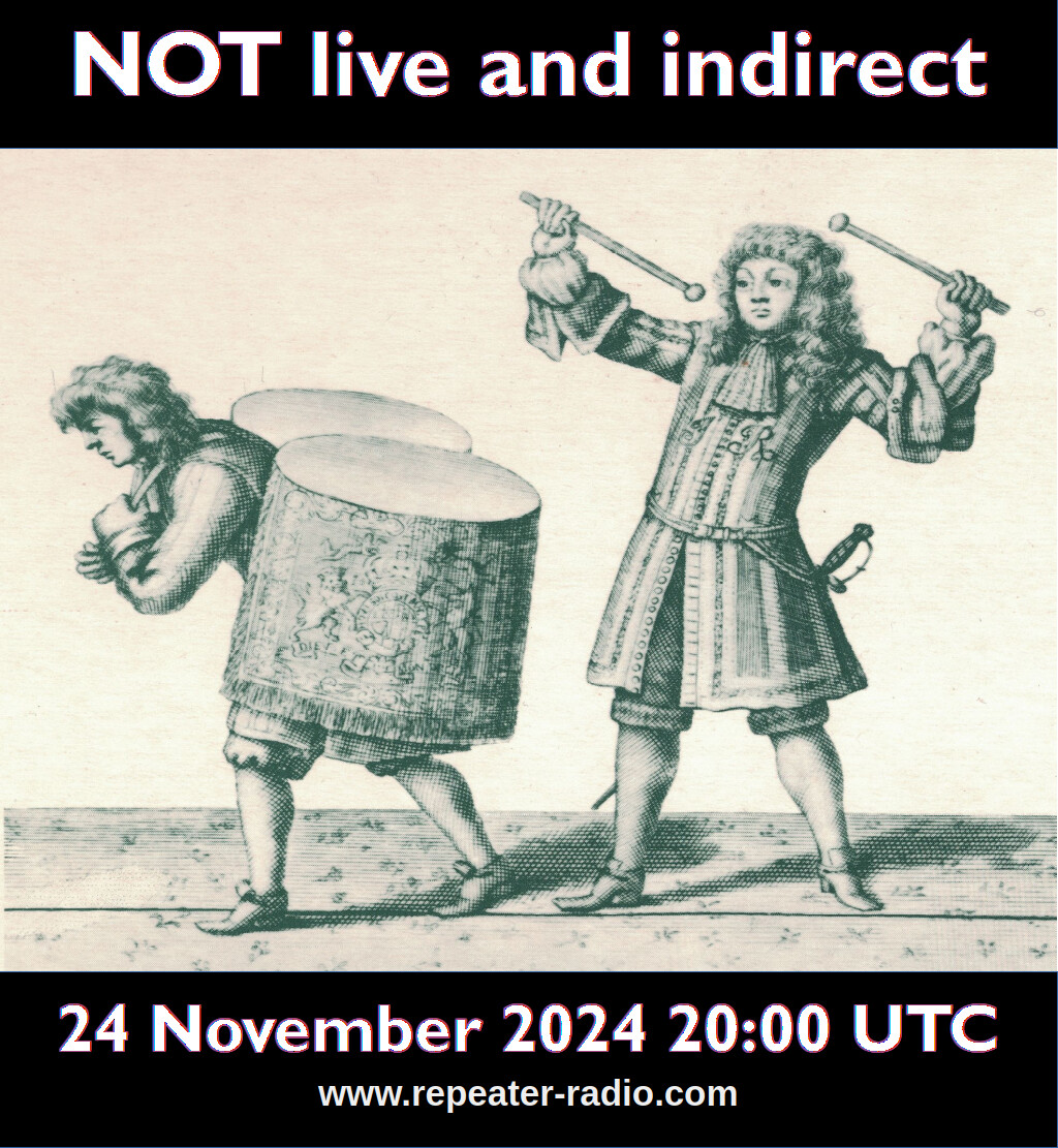 Live and Indirect at 20:00 UTC+1 on Sunday 29 September 2024 on Repeater Radio.