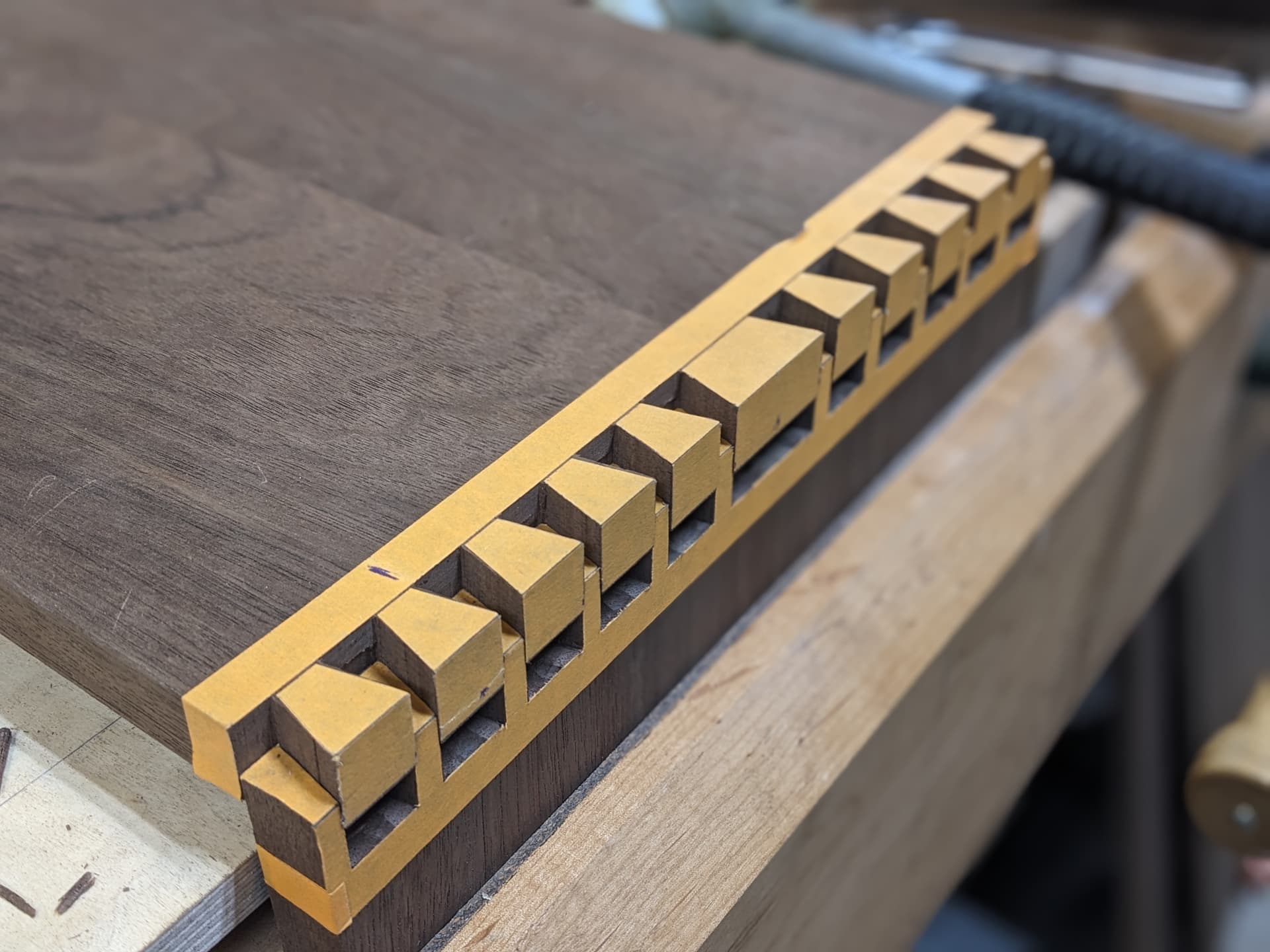 Got around to test fitting all the electronics/control panel/keys. One thing I had to change was remove 1/8th of an inch from the keyboard lip so that it sat at the right height. Since it would have been super awkward to do this via machine (I could have used the standing mill but whatever), I chose to do this the old fashioned way. I cut 100 or so kerfs and used a chisel to remove the waste. This is actually a really effective way of removing material from a captive space. Everything fits now, you can get an idea of what it’ll look like from the pictures.