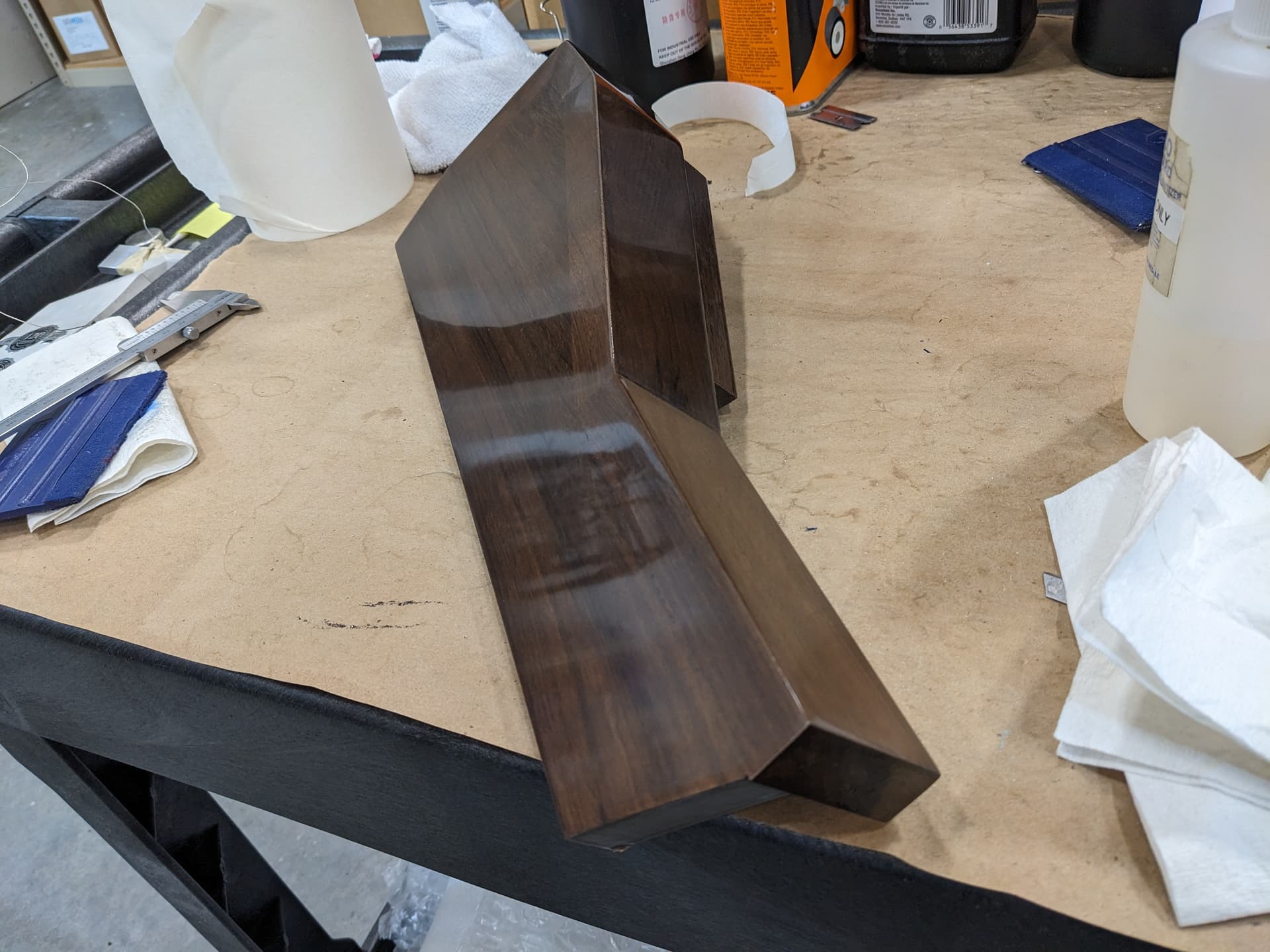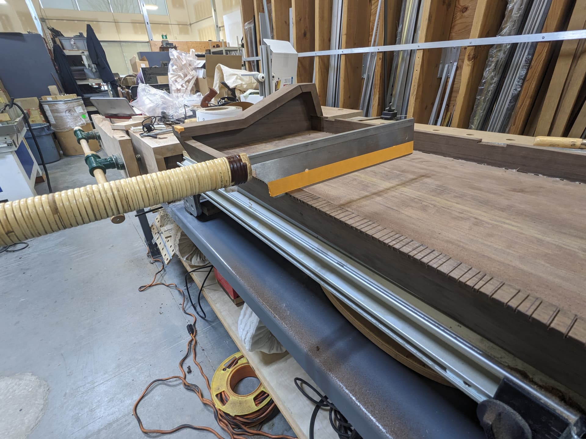With that I could get on to the sanding sealer coats, I did 4 coats and am now waiting a week for it to fully cure before level sanding and moving on to top coats. Look at how rich that colour is! Woah. Couldn’t be happier with this Peruvian Walnut, and I have a tonne left over. Kinda want to do a guitar amp cabinet out of it, maybe one dedicated to this instrument. but anyways…