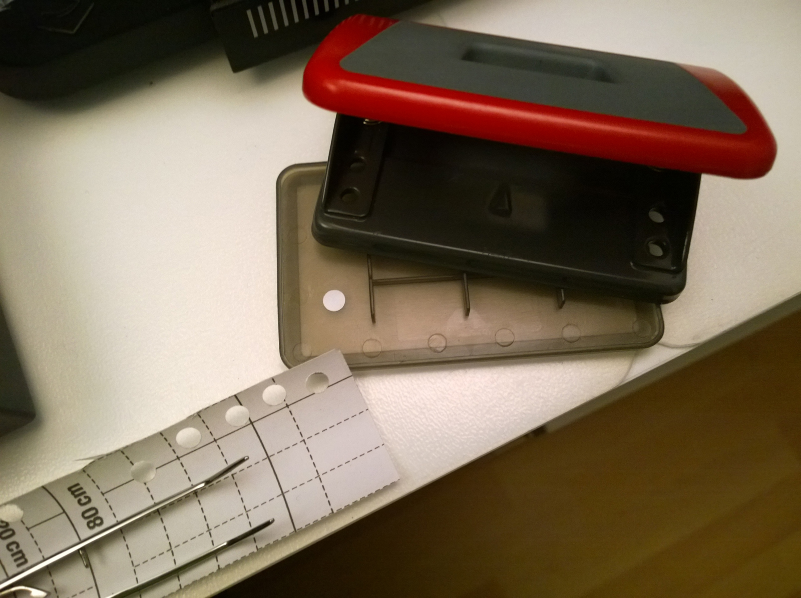 It’s a white self-adhesive wallpaper I happened to have at home. Second picture shows it’s rear side with 1 cm guide mesh. I guess one can use any piece of white sticker … maybe even a stamp