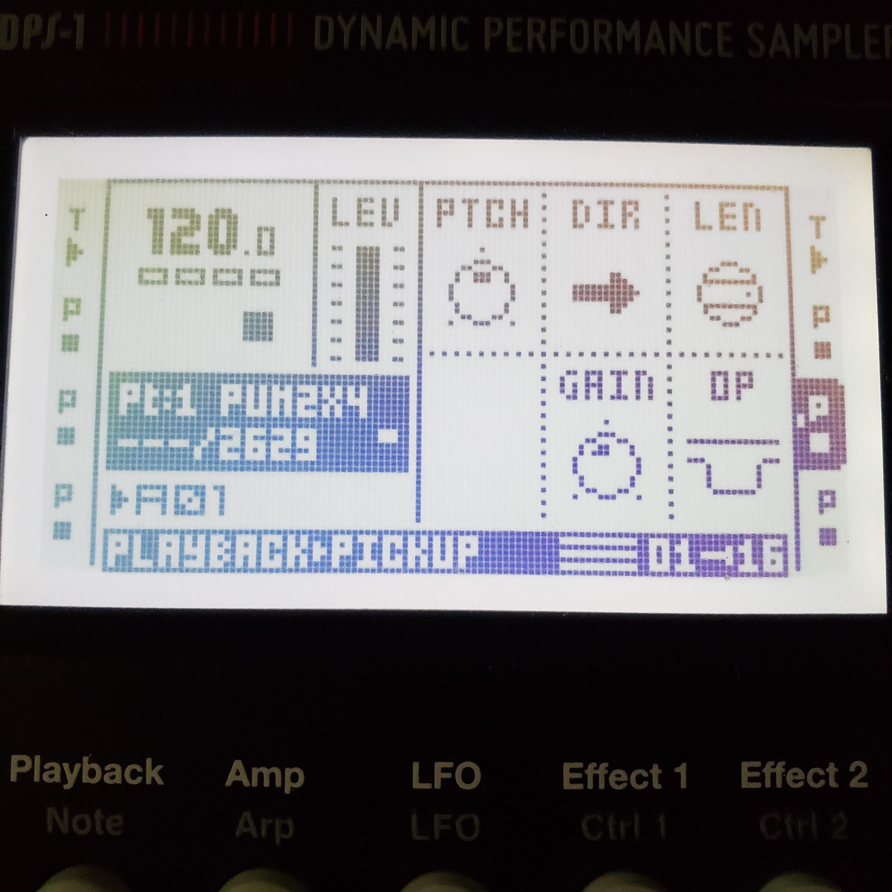 If you start recording with a pickup machine while the sequencer is stopped but STOP recording by tapping the stop key instead of the correct way (rec 2) you can record any arbtrary number of steps in the pickup machine (up to the capacity of the RAM), but you’ve tricked the OT so that it won’t change the tempo to match the legth of the loop. Since PUMs always have timestretch on, I was hoping that even though the audio in the record buffer wouldn’t be exactly the length of the recorded number of steps at the current tempo (because it’s impossible to press stop with sample accutrate timing), it would be timestretched to to actual project tempo. Then you could use it as the master loop length and use a second PUM with the LEN parameter set above 1 to record an even LONGER loop, this time with the sequencer running so that it WAS perfectly quantized to the project tempo.