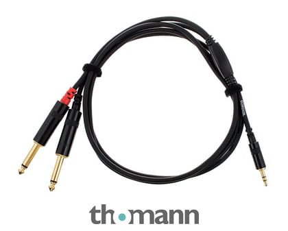 1/8 TRS to dual 1/4 TS, well shielded with gold 1/8" mini plug.