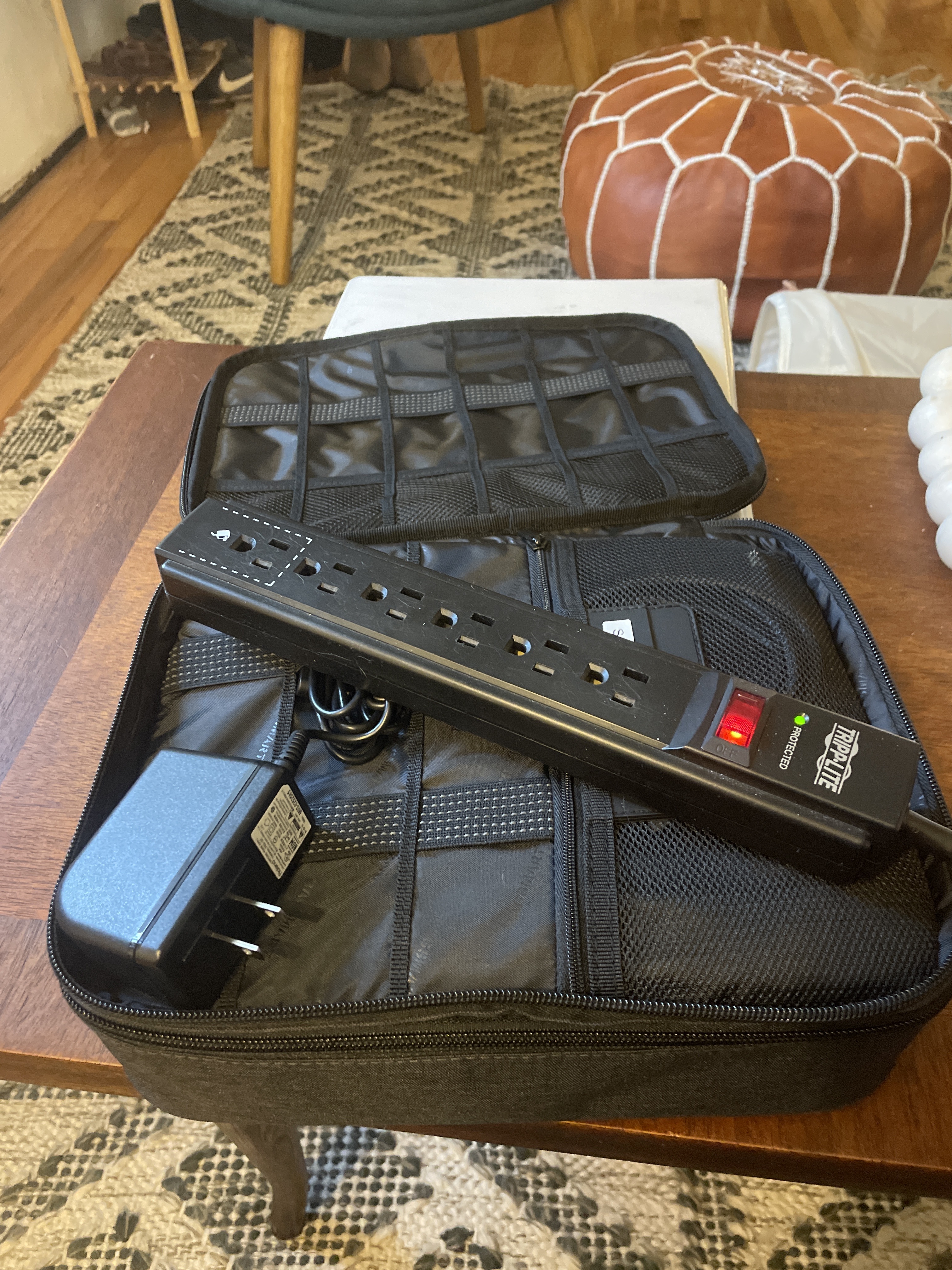 You can’t fit a UK PSU in there as well, but I ordered one of the Birdcords mentioned above so any USB outlet will do me now, as well as the numerous puouches in the bag I can stuff with batteries. Or a power bank. there would definitely be room for a slim one in the top section of the Bagsmart.