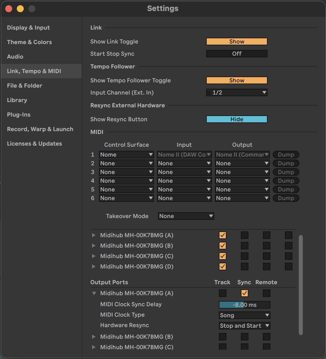 I’m kinda proud of this easy and relatively inexpensive solution that I just came up with that allows you to do independent latency compensation on up to four different hardware devices, and that makes for easy alignment to your DAW’s grid. I’ve only tested this in Ableton but I assume it is as easy to do in other DAWs.