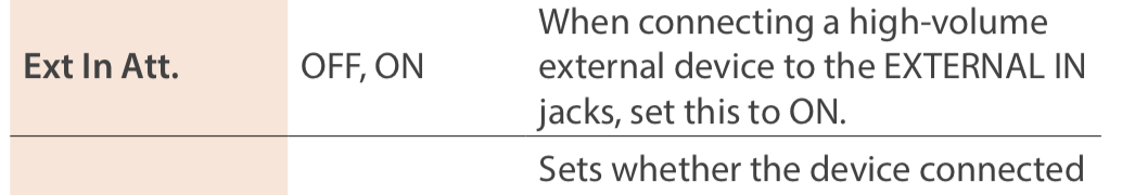 Thatâs correct. Also, the Ext In Gain â â12 dB p. 44. It trims before the sampler; and sets what the recorder actually sees.