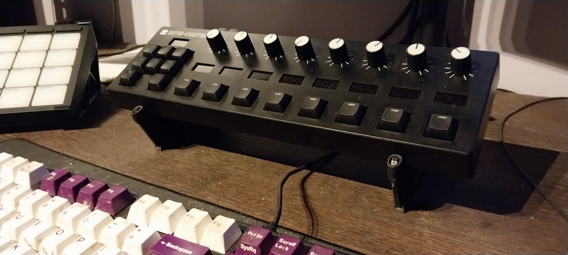 Also, I’ve been using this stand from KVGear (now SynthRISE apparently). Looks like this one is discontinued, it was called the Boo-1 for the Roland Boutique series. Works well enough! Looks like it keeps it raised a bit more off the desk than some other stands I’ve seen which is nice for me being right in front of my keyboard. Sorry for the disgusting keycaps, they’re due for a cleaning lol.