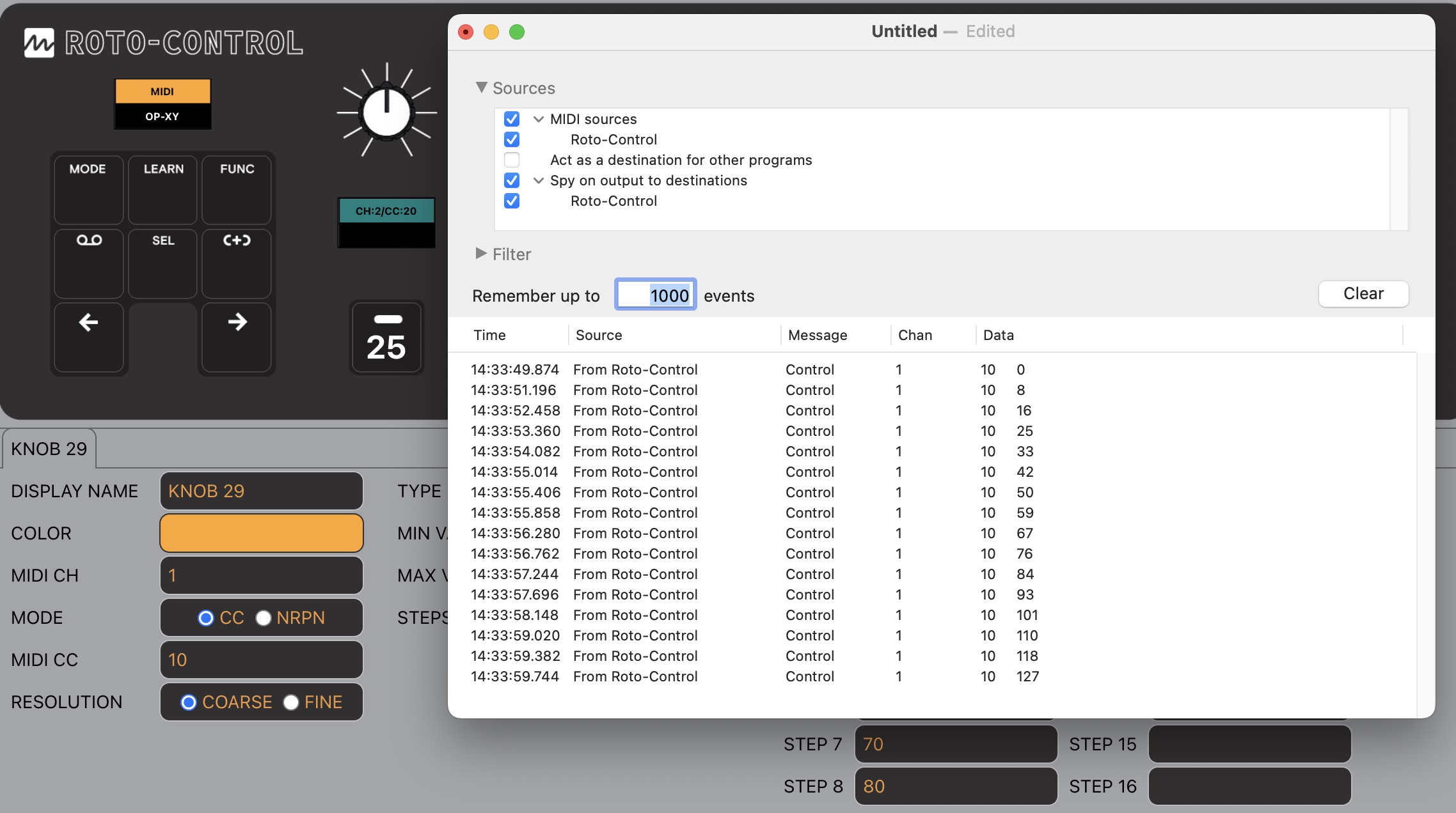 For those sort of toggles I usually prefer to use the buttons on the Roto-Control, which are really excellent for that sort of thing. And when it comes to the buttons, in toggle mode you specify how many steps and then label them, and then adjust what is called the ‘on value’ in this mode. So for the example you gave, you would tell it that there are 3 steps,. leave off set to 0 and on set to 2, and the button will toggle between outputting CC values of 0, 1 and 2.