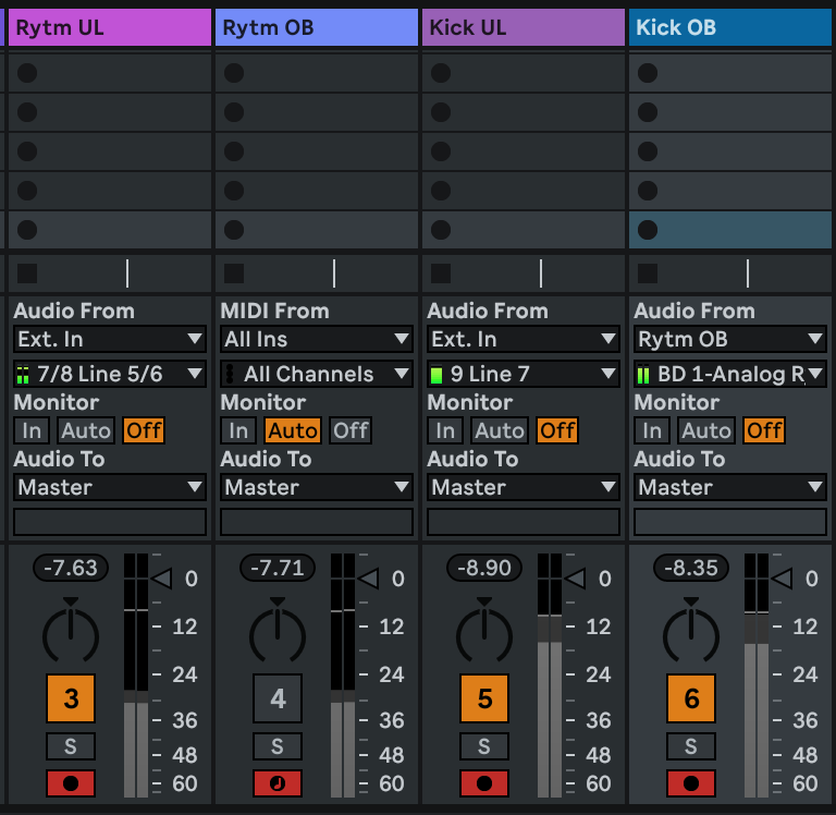 You can get my phat glooms kick if you run your rytm perc (everything but kick ) into A (would be mono though) and the BD into B ? My DN goes into C/D like your synth bus (beep beep) !