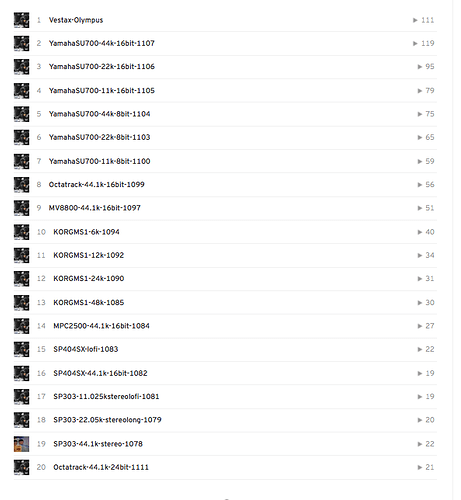 Some of the samplers have various settings for recording such as variable sampling rate (48kHz,44.1kHz,24kHz,22kHz,11kHz,6kHz) and/or bit depth, so I wanted to showcase that. There’s another file I still have to add, but the original sample recorded directly into the Olympus LS-100 was just added and noted on the soundcloud playlist.