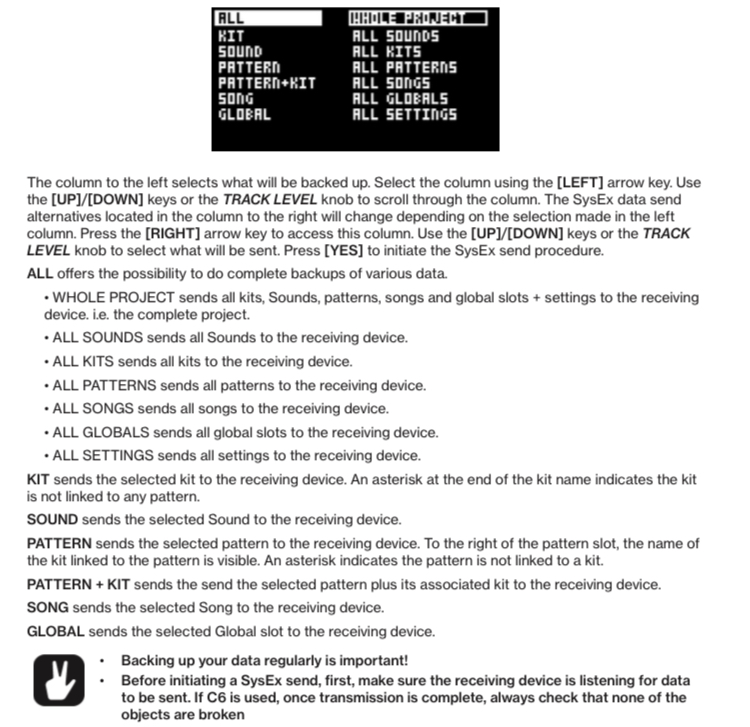 right … i choose usb to connect to the transfer …it connects so i go to the sysex dump …choose whole project, it says sending ,but nothing is sent to my pc