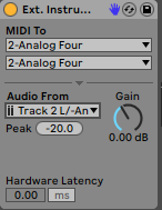 - In “Midi To” select Analog four, and the corresponding midi channel (1 for track 1, 2 for track 2, etc, unless you’ve changed the channels)