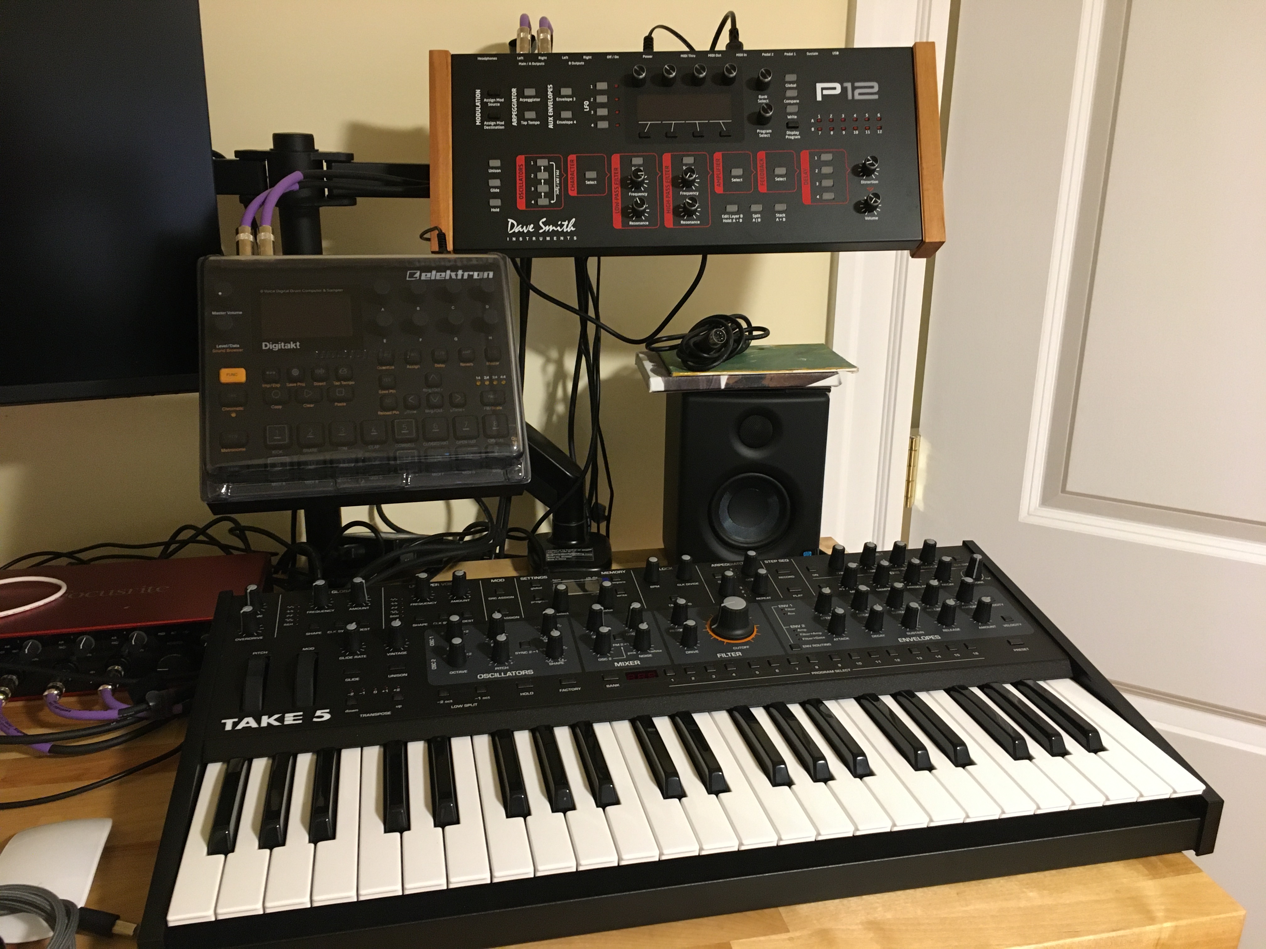 edit: DT is mounted now but maybe not in its final location. it’s nice to get gear off the desk while still keeping it accessible. i prefer the DT to be closer for easy of tapping out stuff on those clicky-clacky keys.