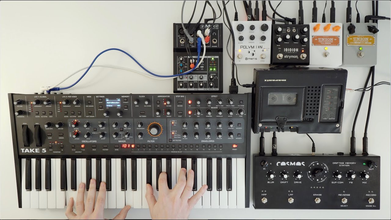 Here, I used it with a piano improv on cassette tape, the Soma Cosmos, and some guitar for good measure. The way the Take 5 pulls the chords out at the end really made the song come together for me. Love it.