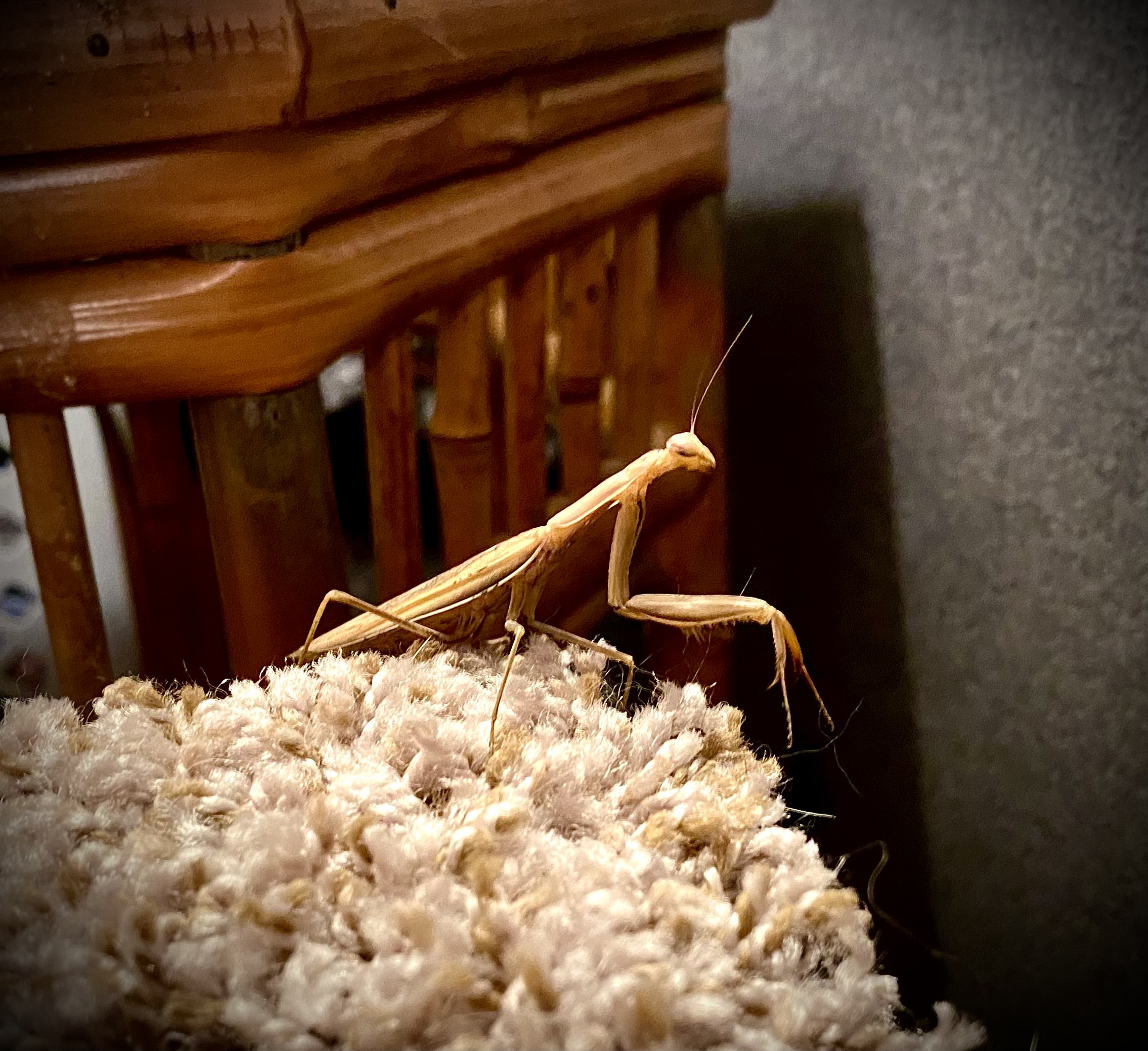 We get preying mantises here too, last one I saw was in my Aloe vera patch, little green one. He’s claimed the patch as his own, and will fight anything that comes by. Including me.