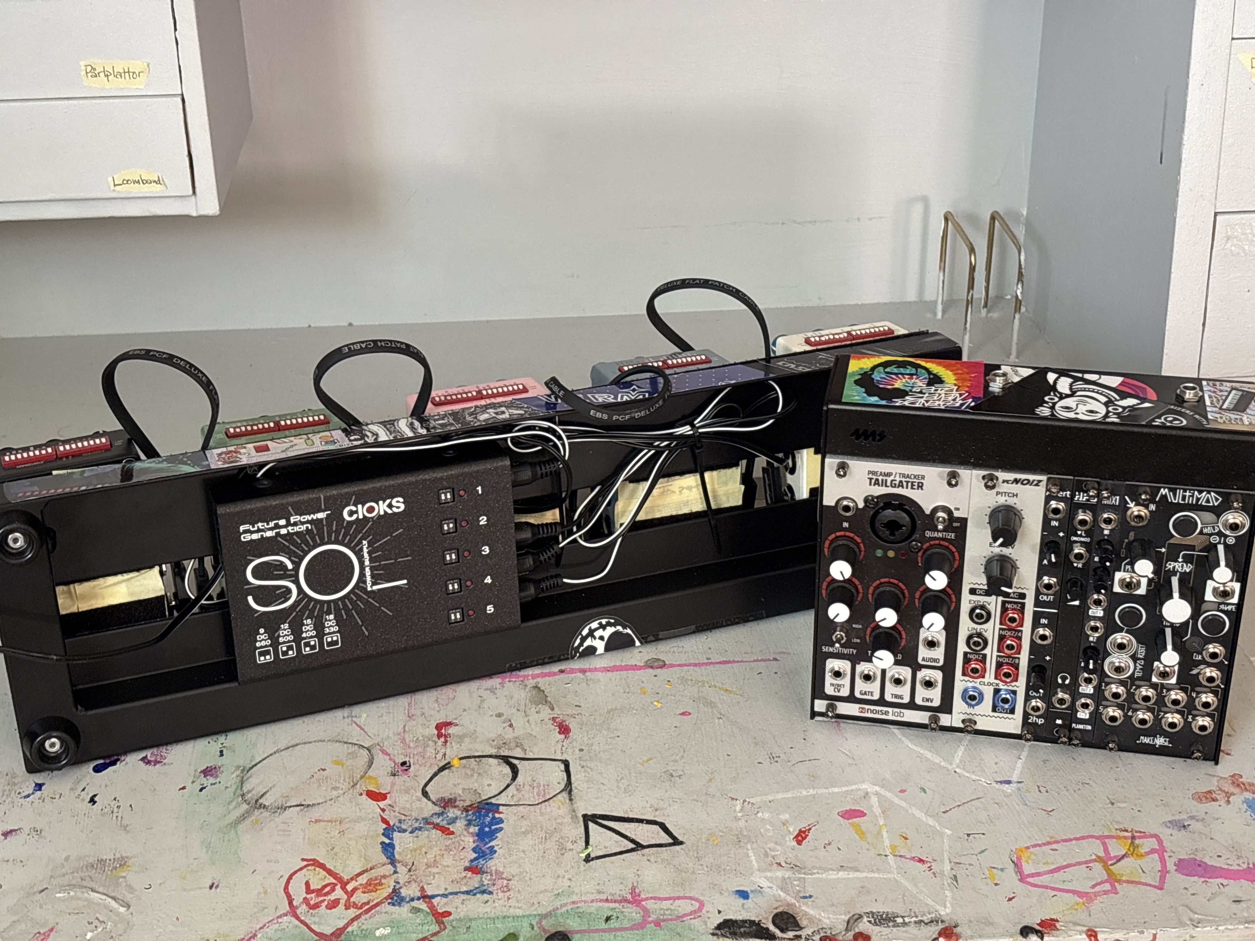 I even have space over for powering my little modular, which I will use to convert CV to expression and send to the pedals. I just have to get the correct cables and module for that.