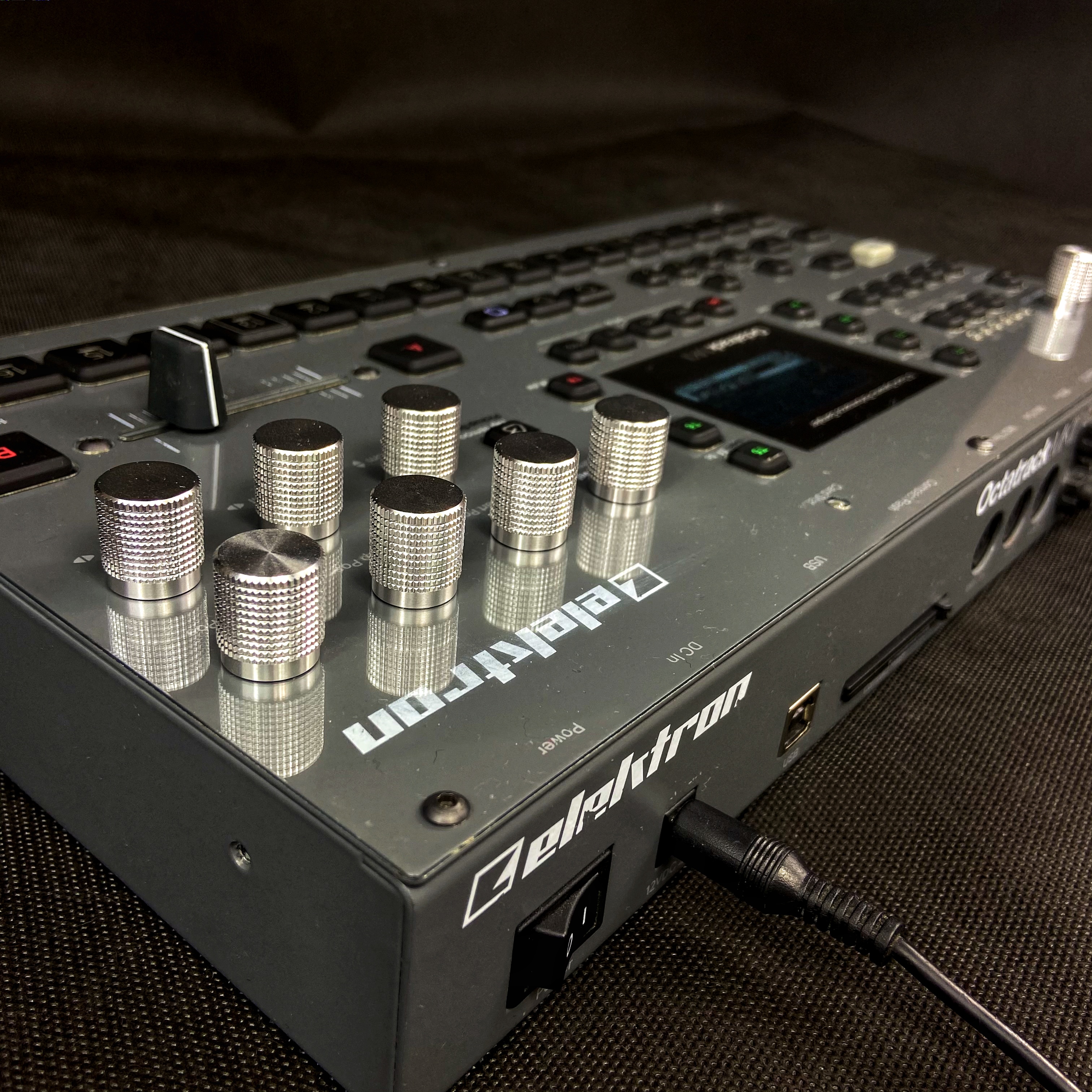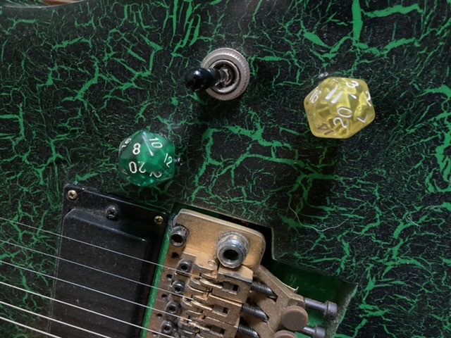 Not elektron gear but some custom knobs I made a few years ago. I scored this 80s ESP M1 custom that was totally trashed (broken neck, chunks missing from the body, etc) and I brought it back to life. Being a shredder guitar with a crackle paint finish and everything I thought it had a nerdy adventure metal vibe so I put some d20s from my old d&d playing youth in the drill press and made these knobs. Silly but appropriate.