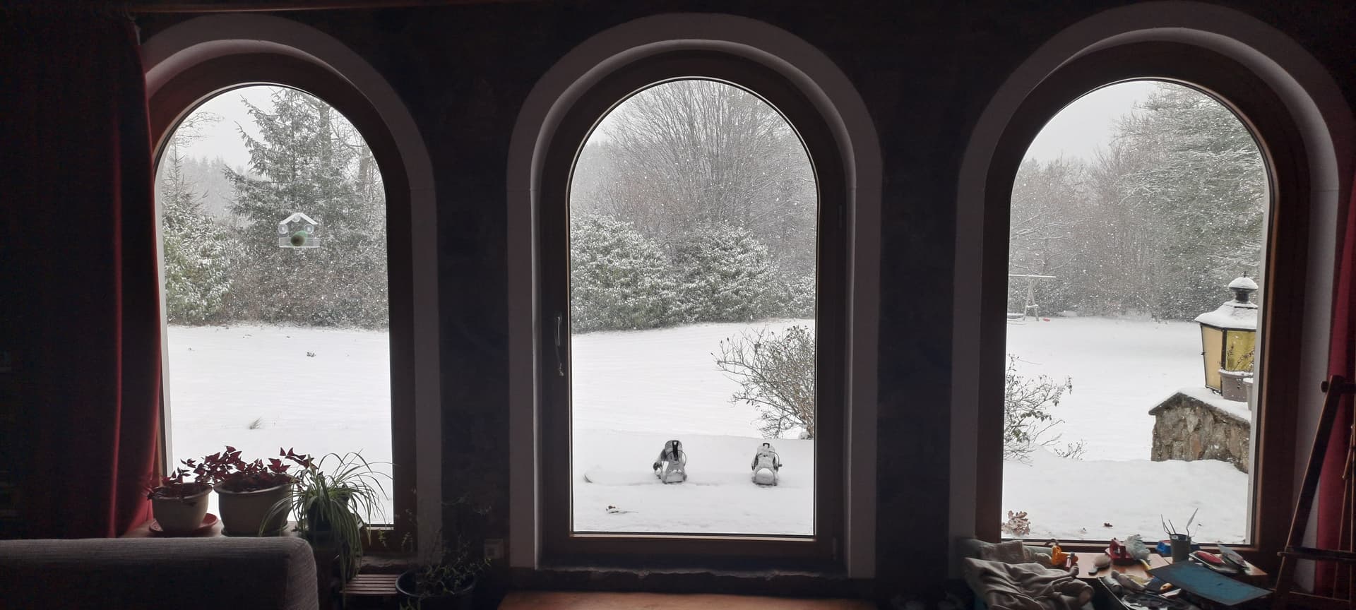 The snow finally started falling here a few days ago. Picture taken from my car on my way home from work.