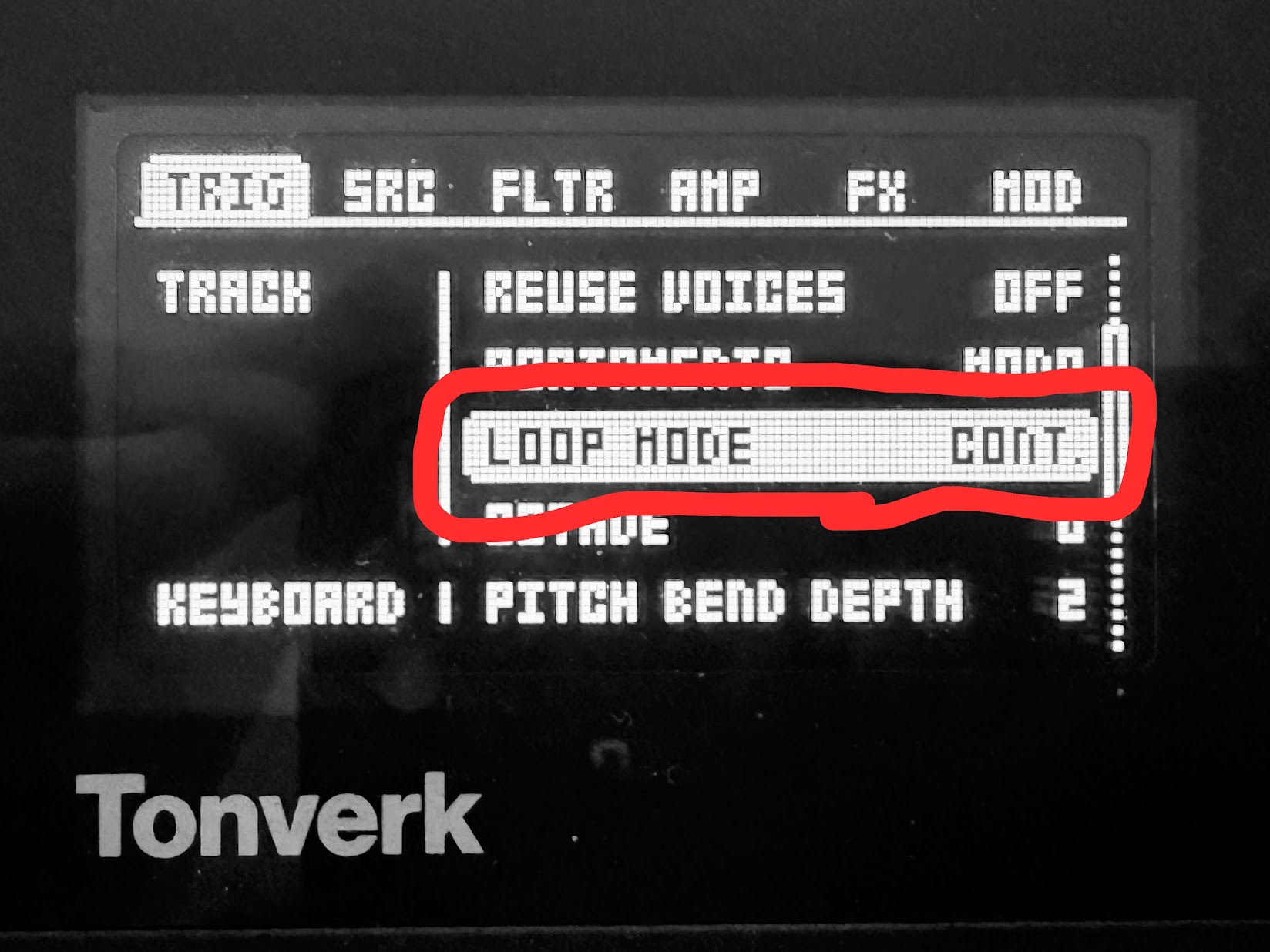If you would like the ADSR to behave correctly, open track setup and change LOOP MODE to Continuous (Continuous makes the sample loop through both the envelope’s sustain and release phases)