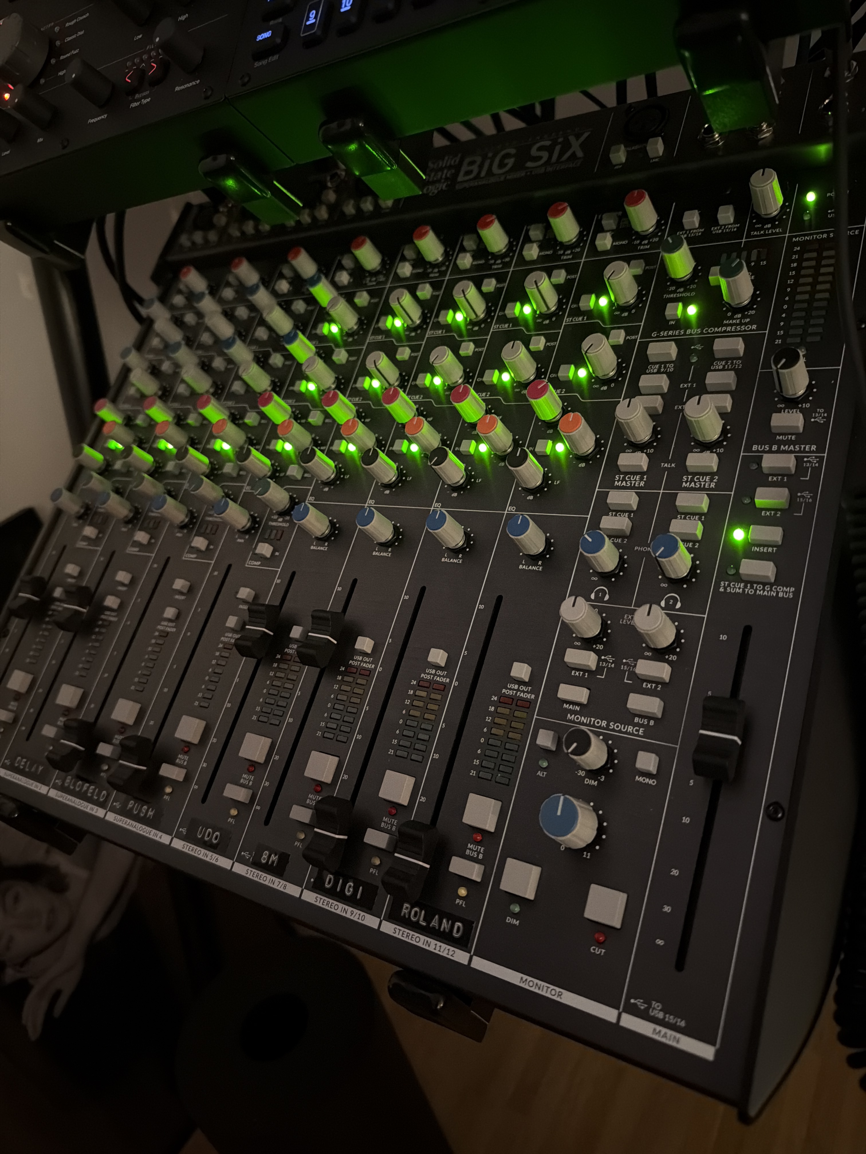 Not sure why you’re not hearing anything from the mono channels when recording, though. I don’t think the cue out to USB should matter here, since you’re trying to record channels 1 and 2 and not the cue out directly, right? Could it be something as simple as channel 1 not being routed properly in Ableton? I have very little experience with DAW recording on the Big SiX, but I’m keen to understand this.