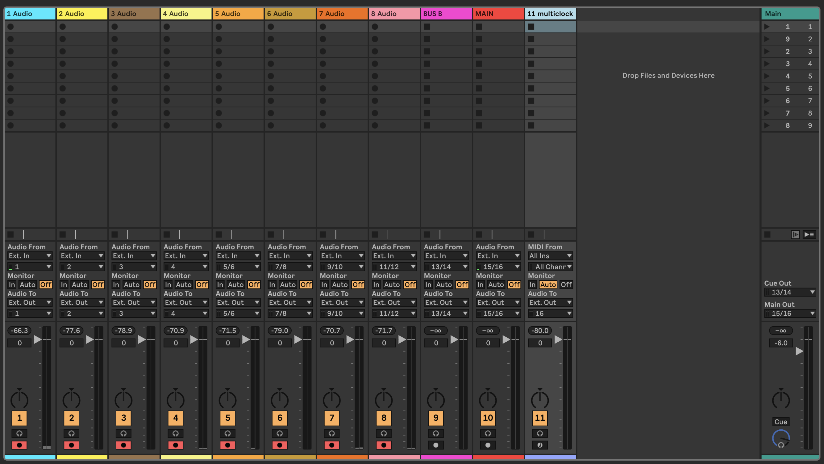 This results in a use of the B6 for me where I handle it as my primary mixer. I don’t mix in Ableton, I mix in the B6, then records the stems to the DAW. When I’m ready to do the mix down it still happens through the mixer and I arm to record the track labeled MAIN.