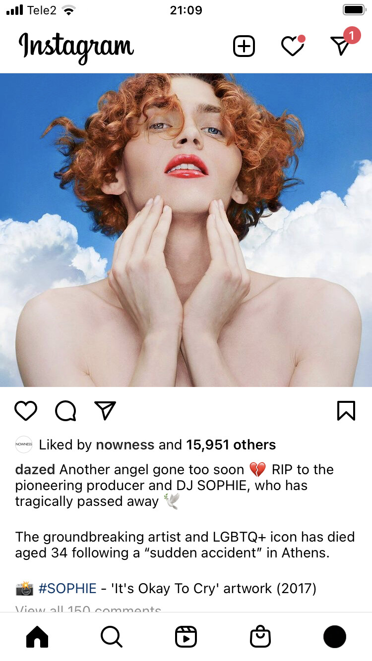 Gutted. SOPHIE was a big talent and a true innovator with so much more still to do. A serious loss for electronic music. RIP.