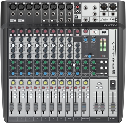 “12-ch Mixer with 8 x Ghost Mic Preamps, 2 x Aux Busses, 3-band British EQs, Lexicon Effects, dbx Limiters, Switchable Hi-Z Inputs, and USB Playback and Recording”