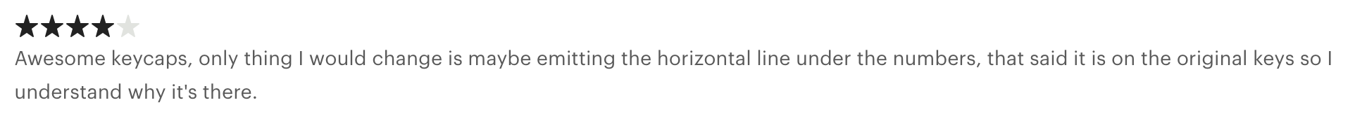 -* I had to insert this here because I chuckle every time it crosses my mind, but to this day my worst review on etsy involves my keycaps. It is not due to a flaw or overall quality issue, but it is a criticism that I made the keycaps too much like the factory lol