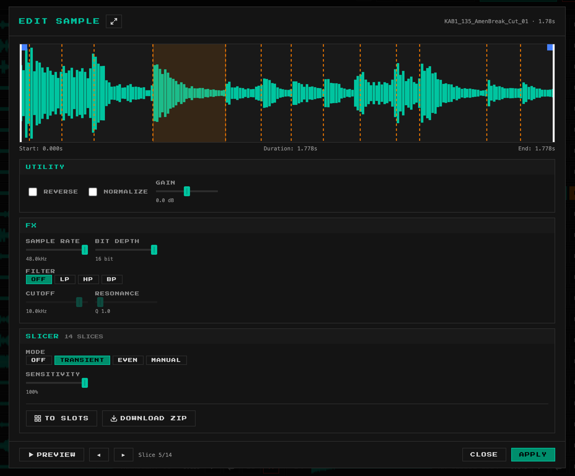 Okay, this is getting to be fun. Because your tool is so convenient AND supports sample rate reduction, I’ve been using it to experiment with incorporating sampled elements and even loops of my own Ableton produced music on the Syntakt.