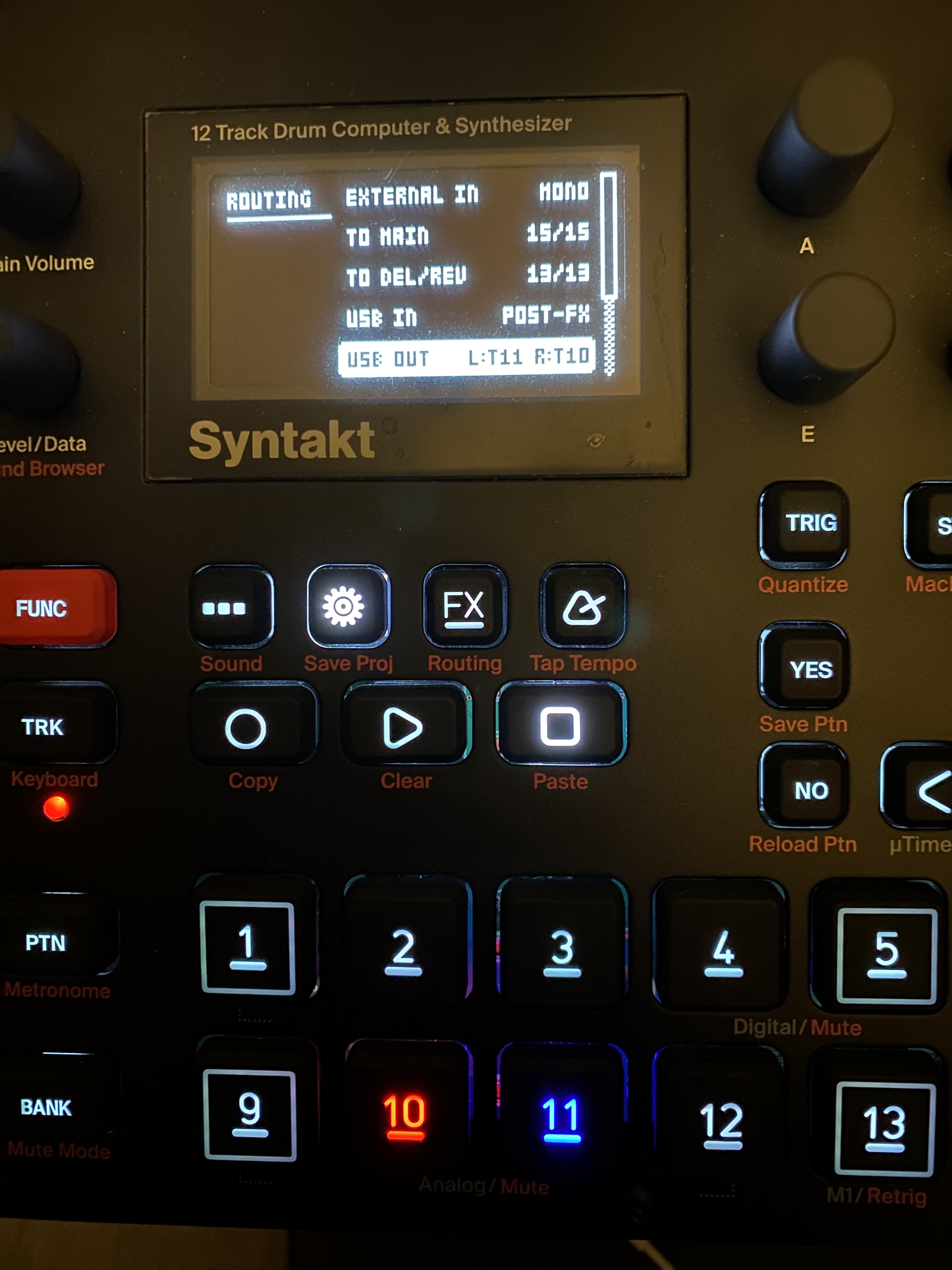 The other thought with the usb option is my sounddevices mix pre 3. I usually take that out live to record a set anyhow, but I could prob set up an fx loop template on that for the pedals and use the usb to route that back into the syntakt.