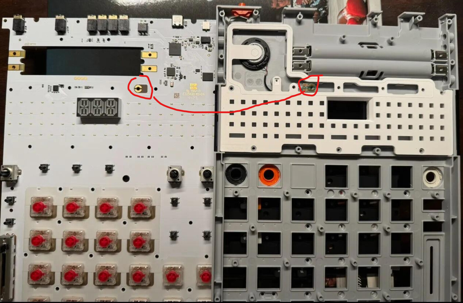 i havent scrutinized the teardown photos enough yet. but it looks like the speaker connection is just pads being forced together by the screws similar to the battery connection. maybe it needs to be reseated, or screws tightened. Or most extreme a dab of solder to raise its height.