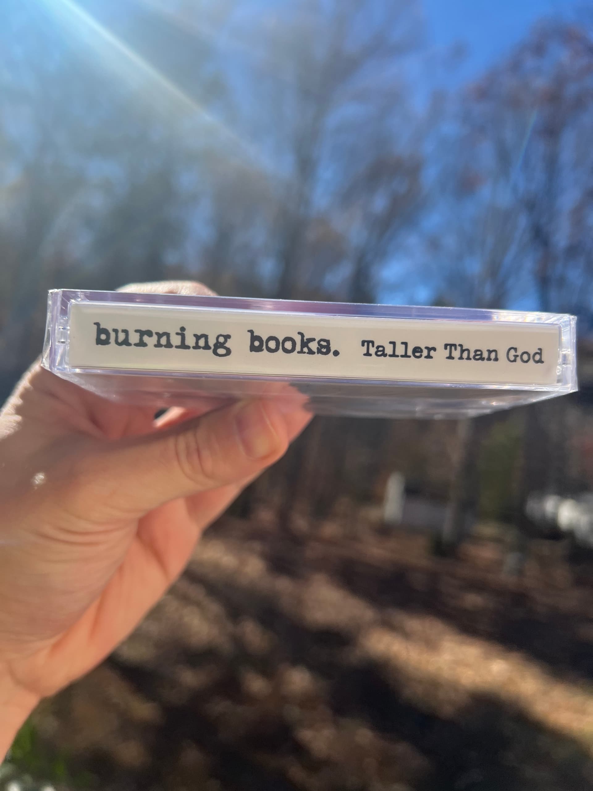 Pleased as pleach ahem erm peach to report that the Burning Books - Taller Than God cassettes are here. Hi-Fi and pro-dubbed in realtime with a white shell encasing.