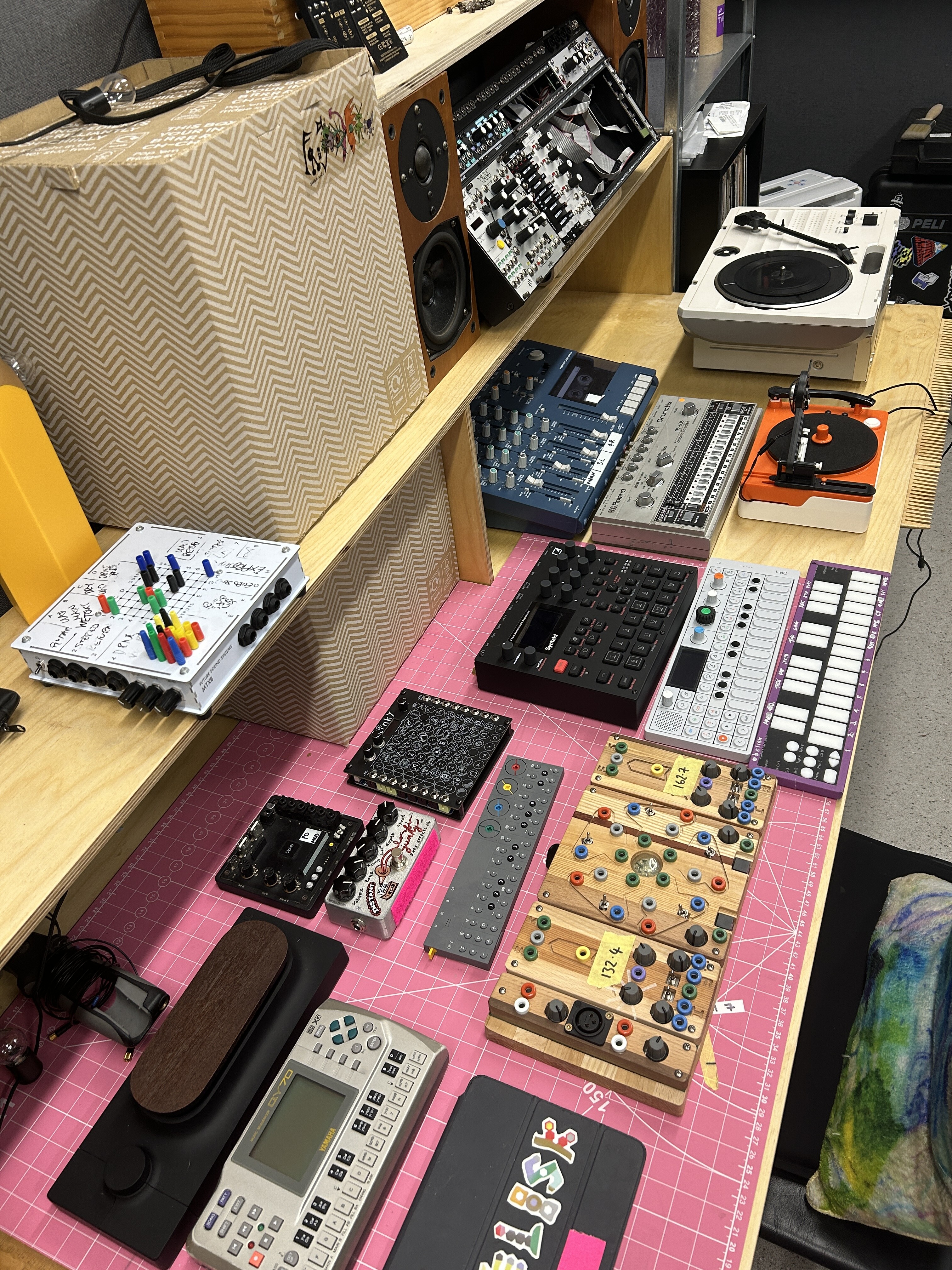 My studio now has two islands, a main laptop/monitor sound card space with a few midi controllers and a master prophet 5 synth setup, and then another table with various grooveboxes and processors which focussed more on just exploring sounds and ideas.