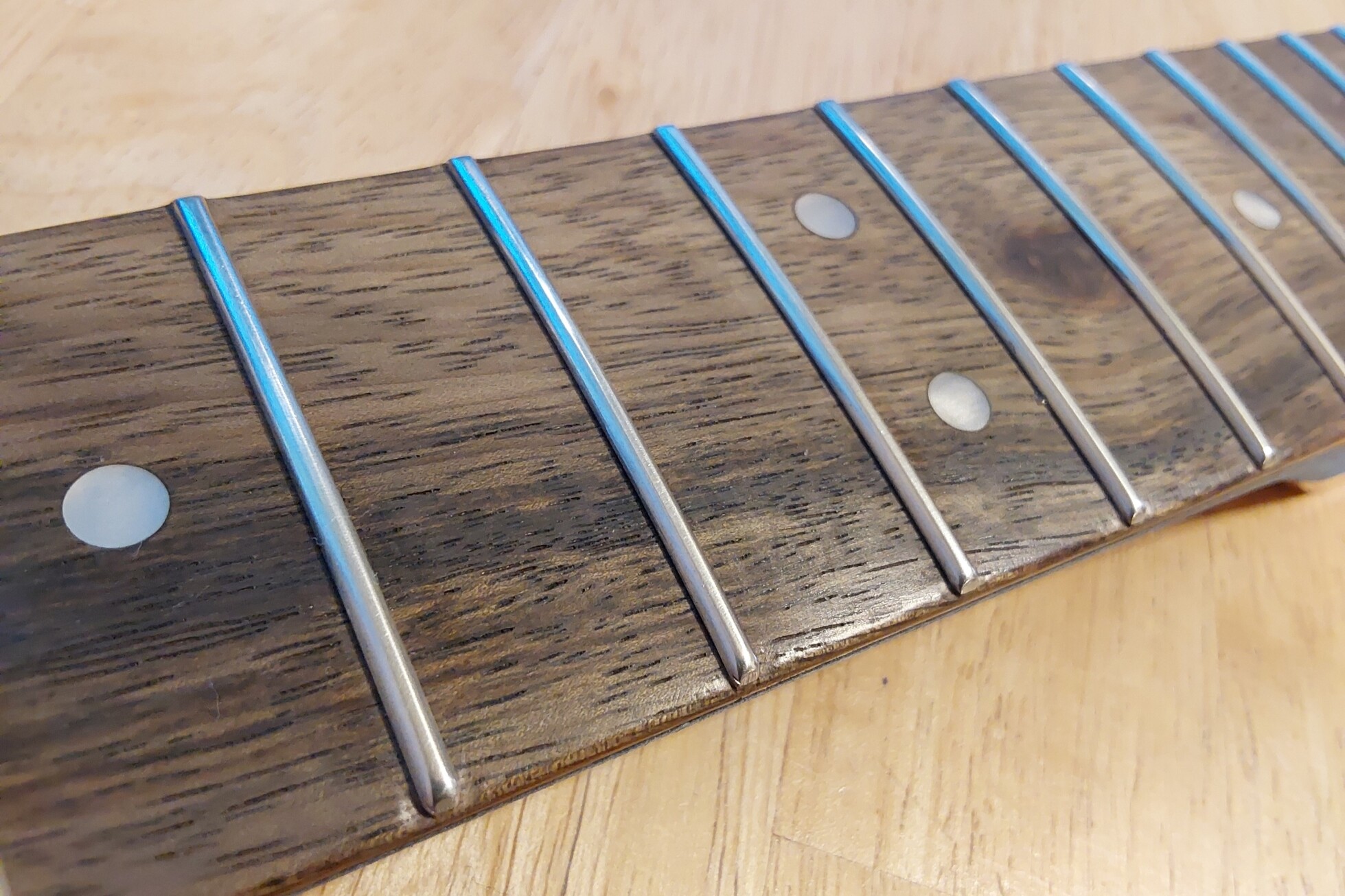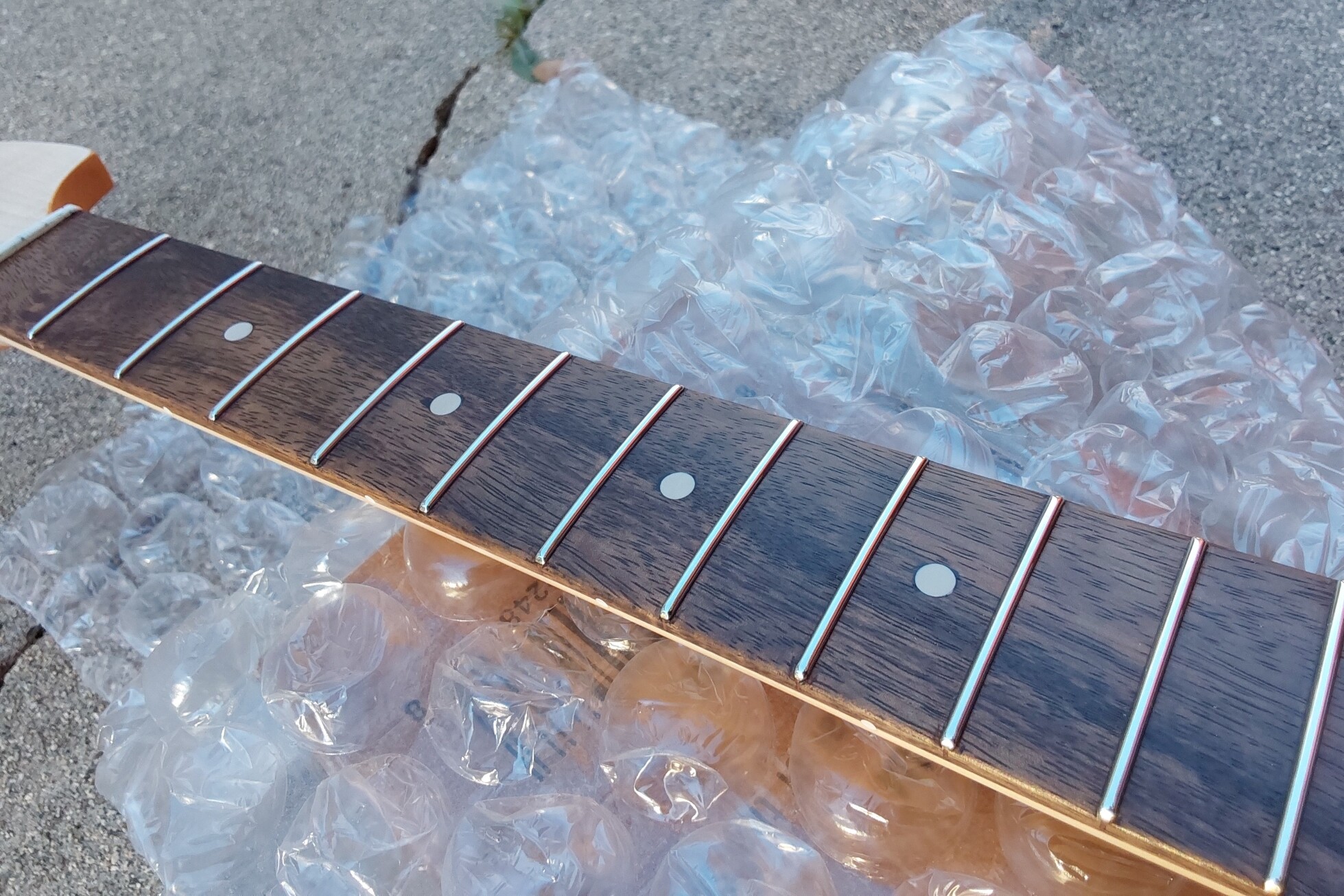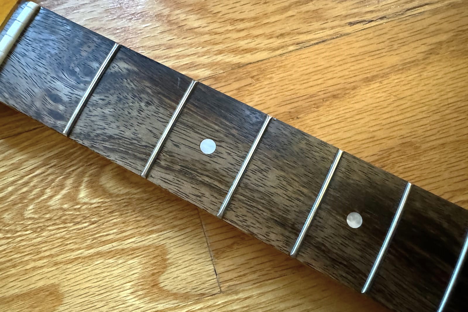 At this point I had successfully stained the fretboard, but while my goal was “rosewood” I ended up with ebony.