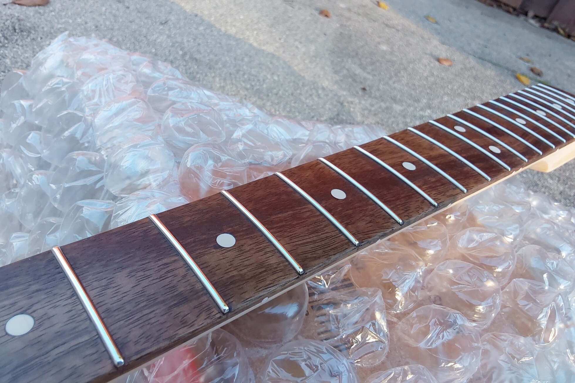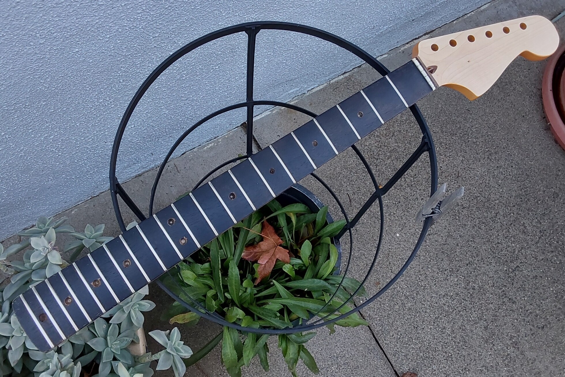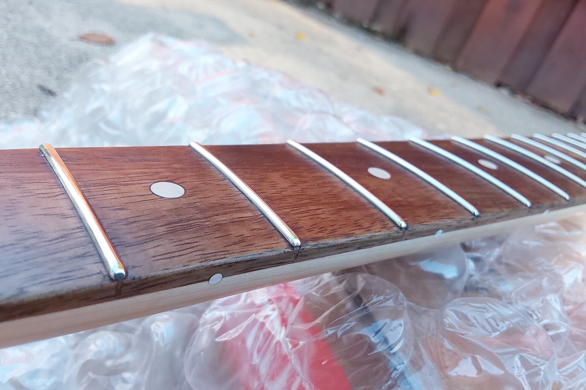 At this point I had successfully stained the fretboard, but while my goal was “rosewood” I ended up with ebony.