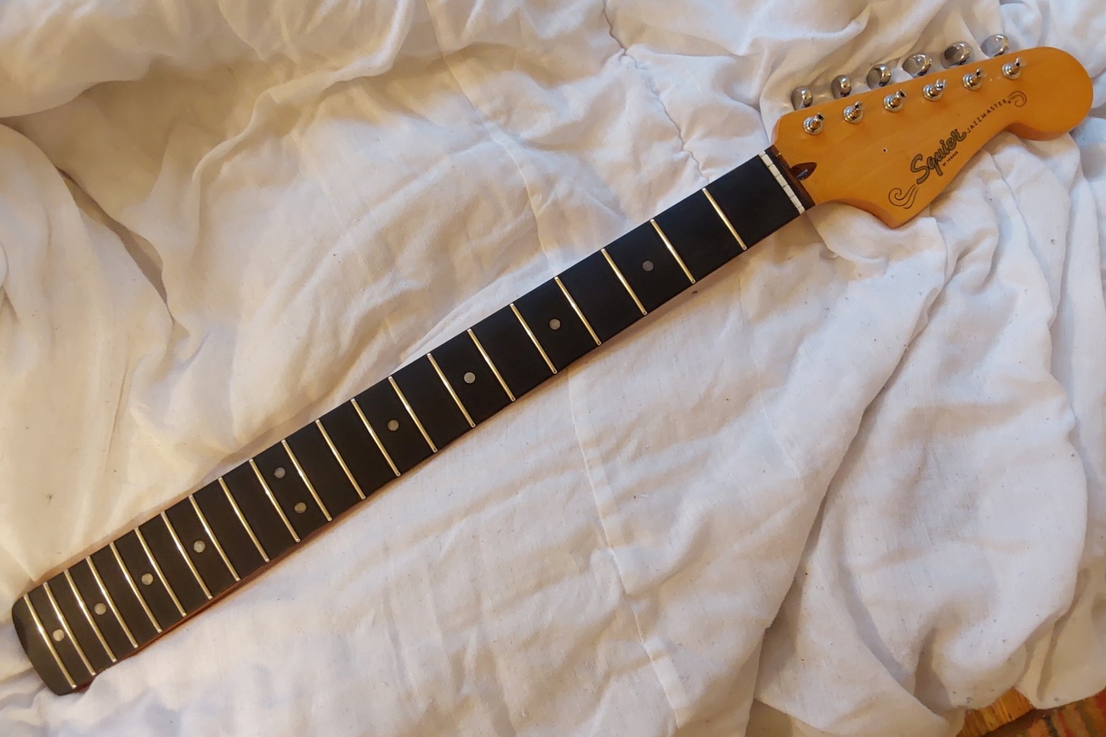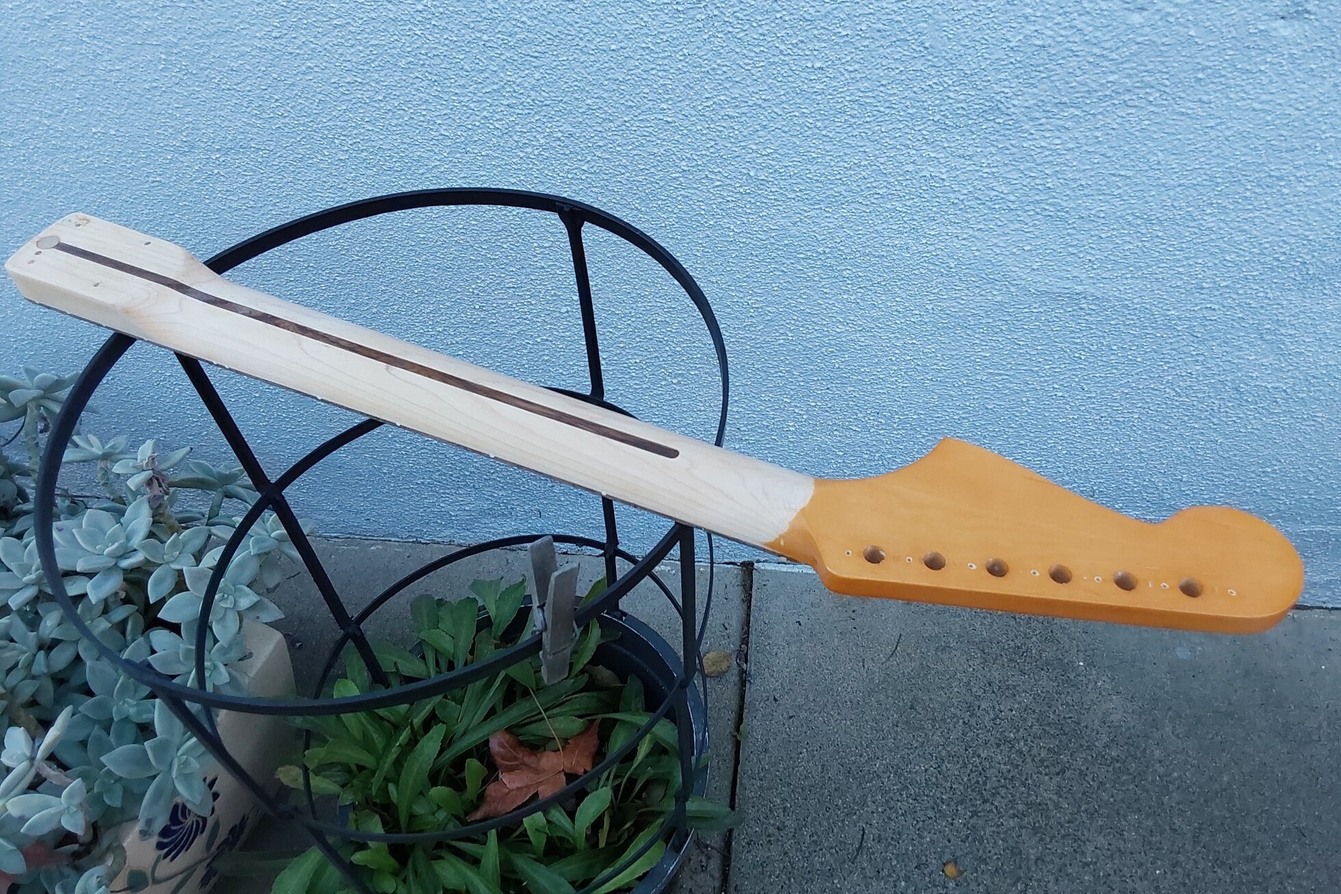 I could maybe have continued and gone a little darker, but I got to a point where I felt maybe I should “leave well enough alone” so that I didn’t go too far or end up regretting it and, after a few days of looking at it, I’m fairly pleased with the color. I don’t think the pictures represent the richness of the reddish brown and it might be slightly darker than the pictures show, but overall, I think it comes across that it came out well. And it feels like a much higher quality neck than any squier I’ve ever had my hands on.