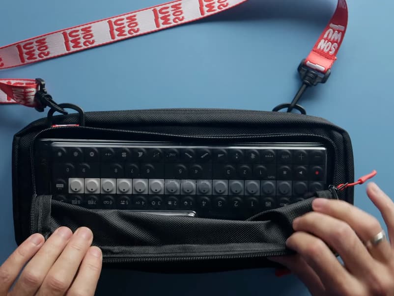 It opens up with a padded section, and then the outer pocket is large enough to hold a device, even with a decksaver on it. Or it’s just a cute Son Wu purse!