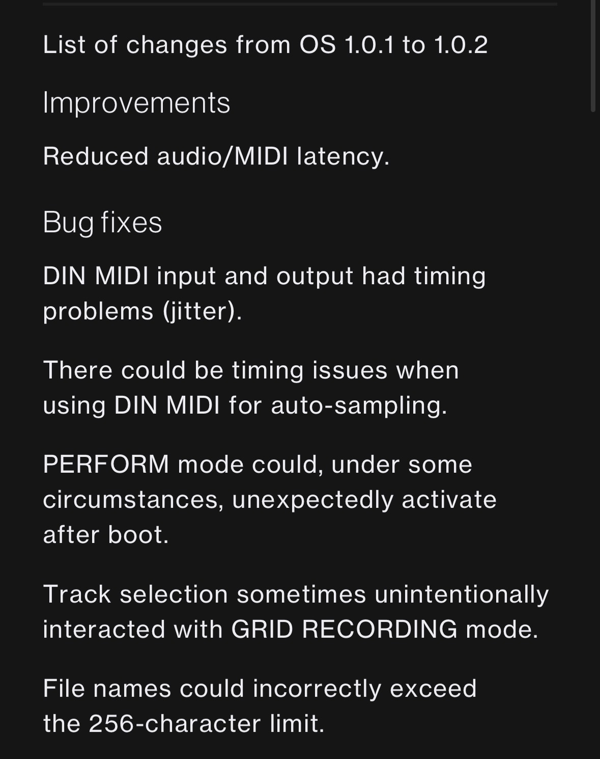 @Elektron it would be super handy if you posted the release notes, instead of relying of users to do so. There is always room for improvement. Other than that - great news - still waiting for a Wavetable and Slice engine.