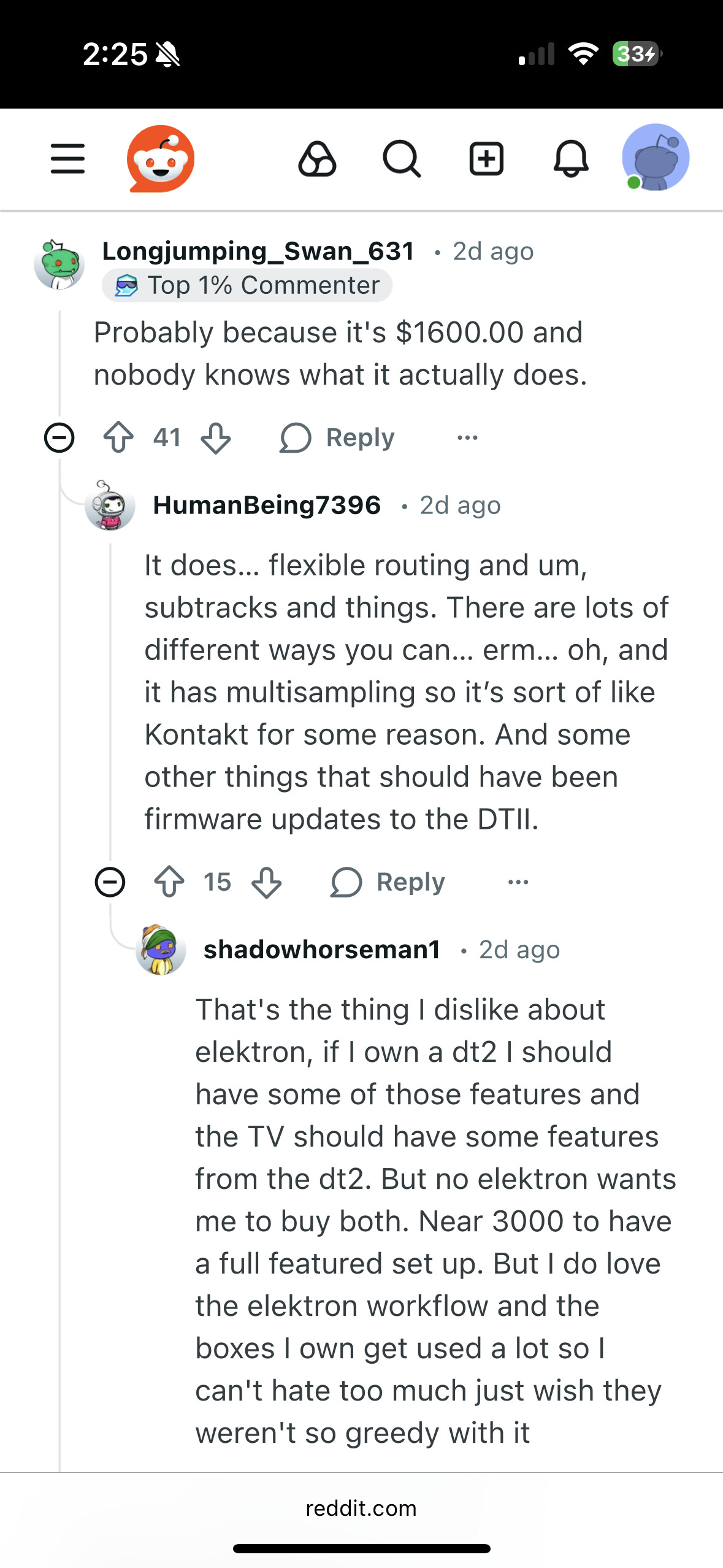 Look at this thread posted 2 days ago on Reddit, where people wouldn’t even dream of policing tone the way it is here. These are people who may have never even used Elektron gear before—same complaints about lack of slicing and comparisons to alternatives like the new MPC. There’s no point complaining about the tone of criticisms. It’s more important for Elektron to take all these criticisms seriously.