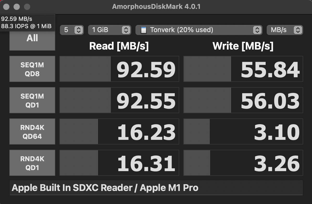 The Dirtywave M8 uses cards that have a good sustained read speed, because it streams all its samples from the card. The peak speeds usually tested don’t apply.