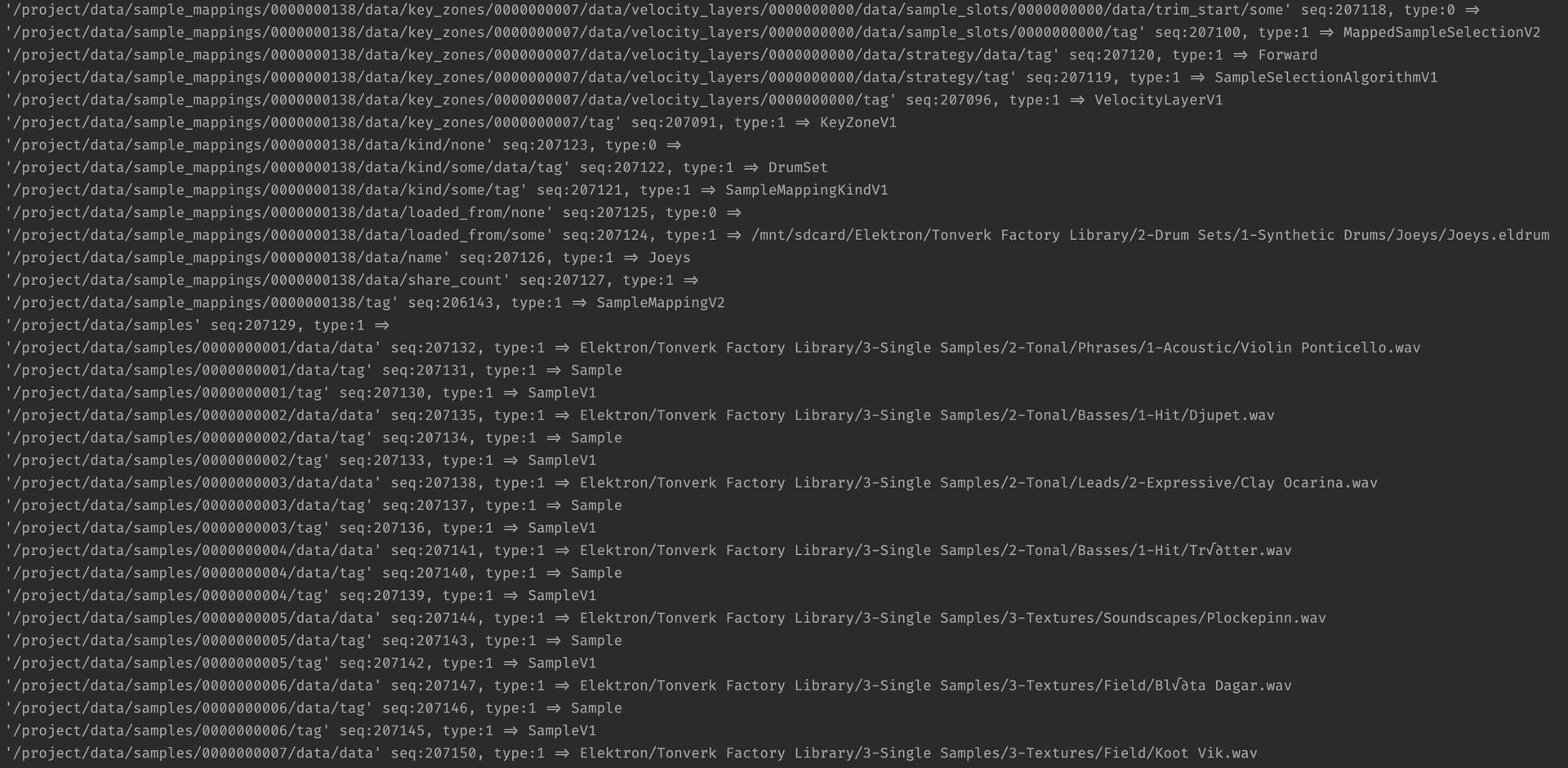 I’m guessing this is rehydrated to memory when the device loads, and it stores all the project data as key-value pairs, all file paths for everything in the project is in there too - so moving/renaming samples/presets is absolutely going to bite us in the ass if we try to do that!