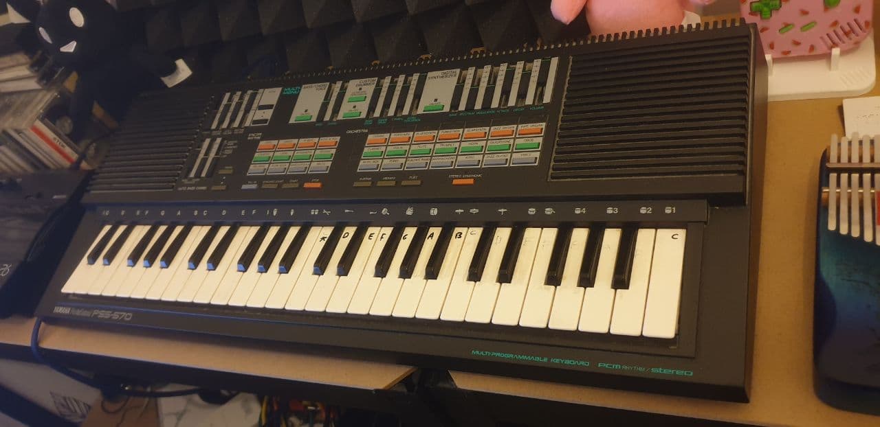 I’ll kickstart this thread by posting my Yamaha Portasound PSS-570. I picked this up locally for 15 euros. This synth is a simple 2OP FM synthesizer, based on the same chip used in the old AdLib soundcards. It has a few sliders that allow you to manipulate the FM synth in a few basic ways.