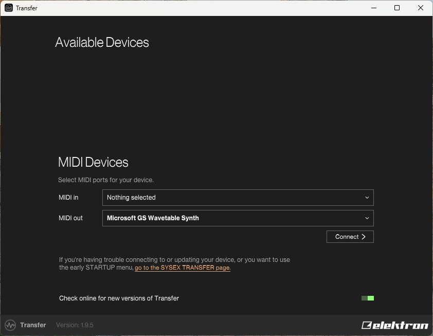 I wanted to play a bit with my Syntakt, I plugged it and saw OS 1.21. I checked the last firmware is 1.30b. So I installed transfer, connected the Syntakt with USB cable, run Transfer, and nothing. No midi port available.