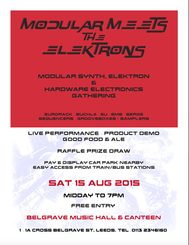 Can anyone enlighten me with info on any more get togethers/synth meets in Leeds/Yorkshire for Elektron and Modular? Would really like to start to socialise and share ideas with the community. Im a user of Elektron and Moog, will soon be diving into Eurorack when I move to the new studio and would like to learn things from other guys, join in with synth jams and hear some modules in action. Thanks!
