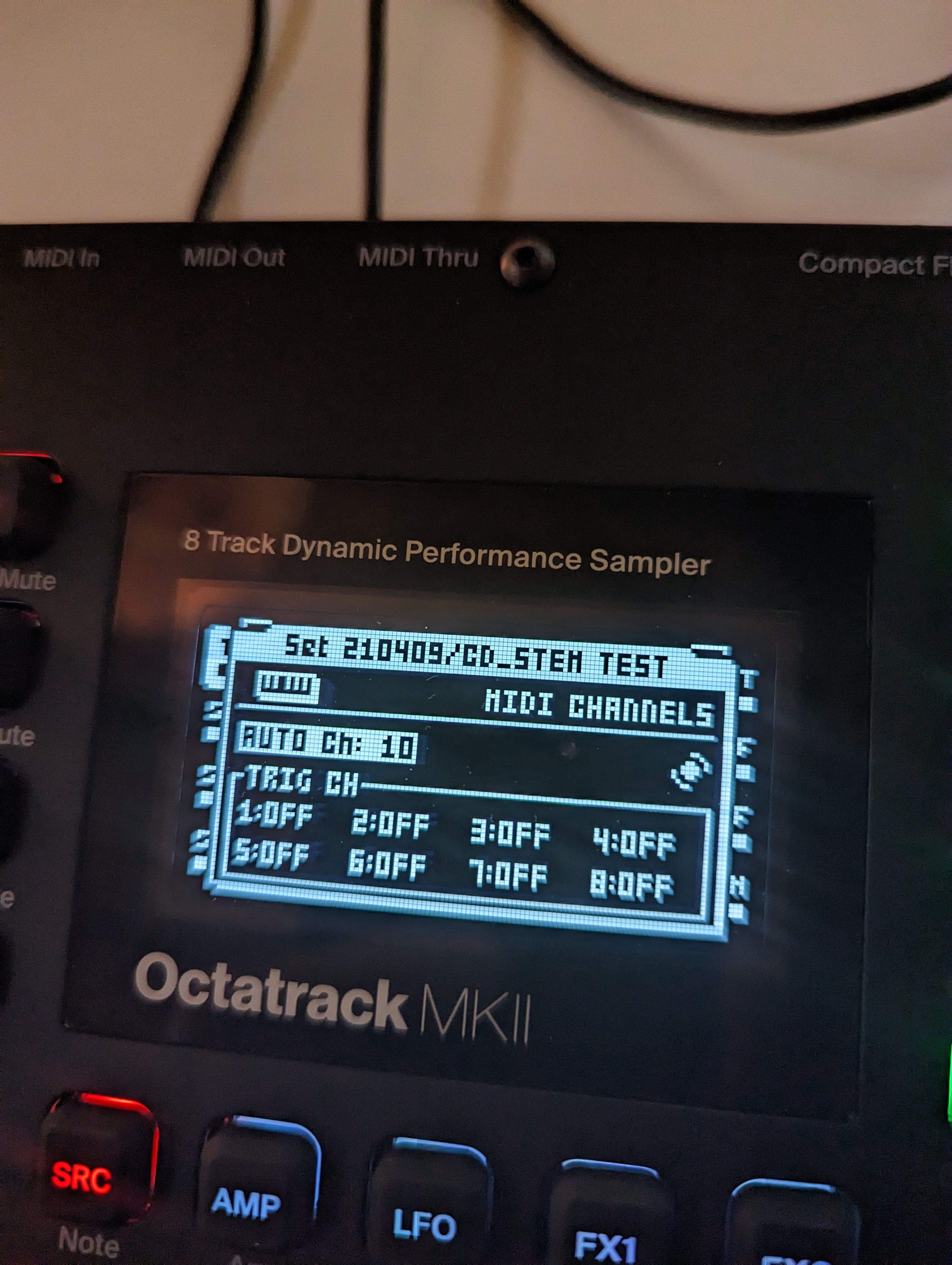 In the MIDI control settings on the Octatrack I have “AUDIO NOTE IN” turned OFF, because otherwise playing keys on the Virus triggers all kinds of weird shit on the OT. There is no such setting on the DT.