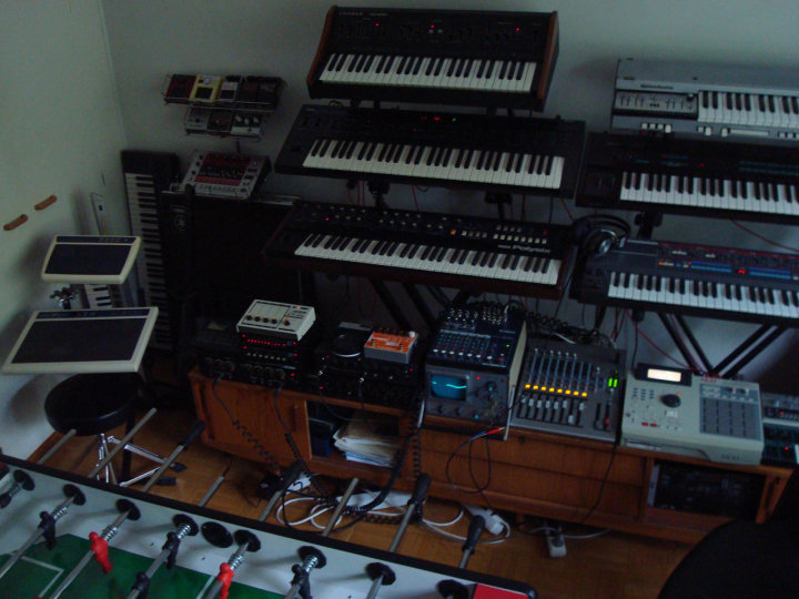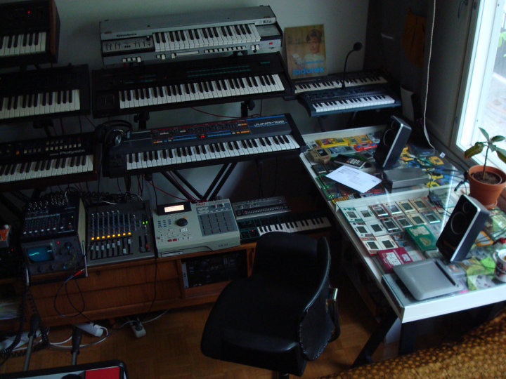 (I wonder how I listened to all those synths in the pics. The only speakers I see in those pictures are those shitty Logitech computer speakers on the table. 10K worth of synths and 10€ speakers.)