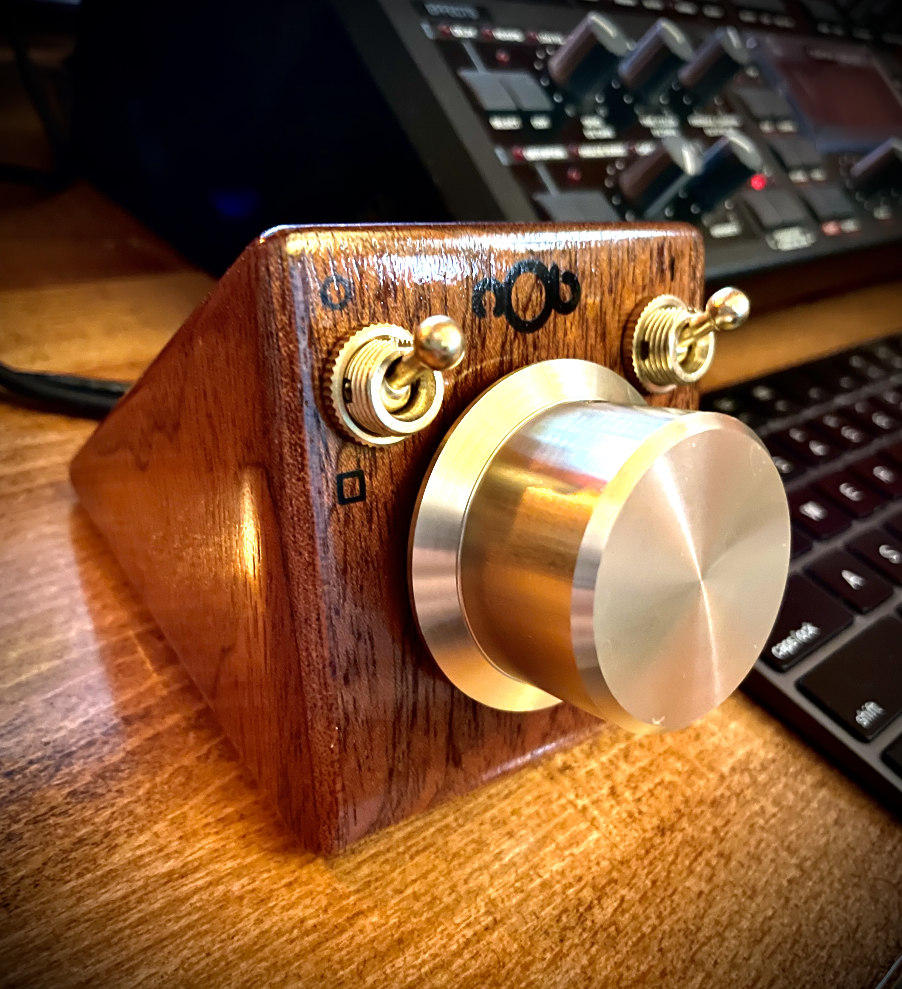 The switch on the left flips between fader and knob modes. In knob mode the cursor returns where you started when you let go of the knob, for one example. It’s also very precise so that you can make the smallest adjustments on a control.