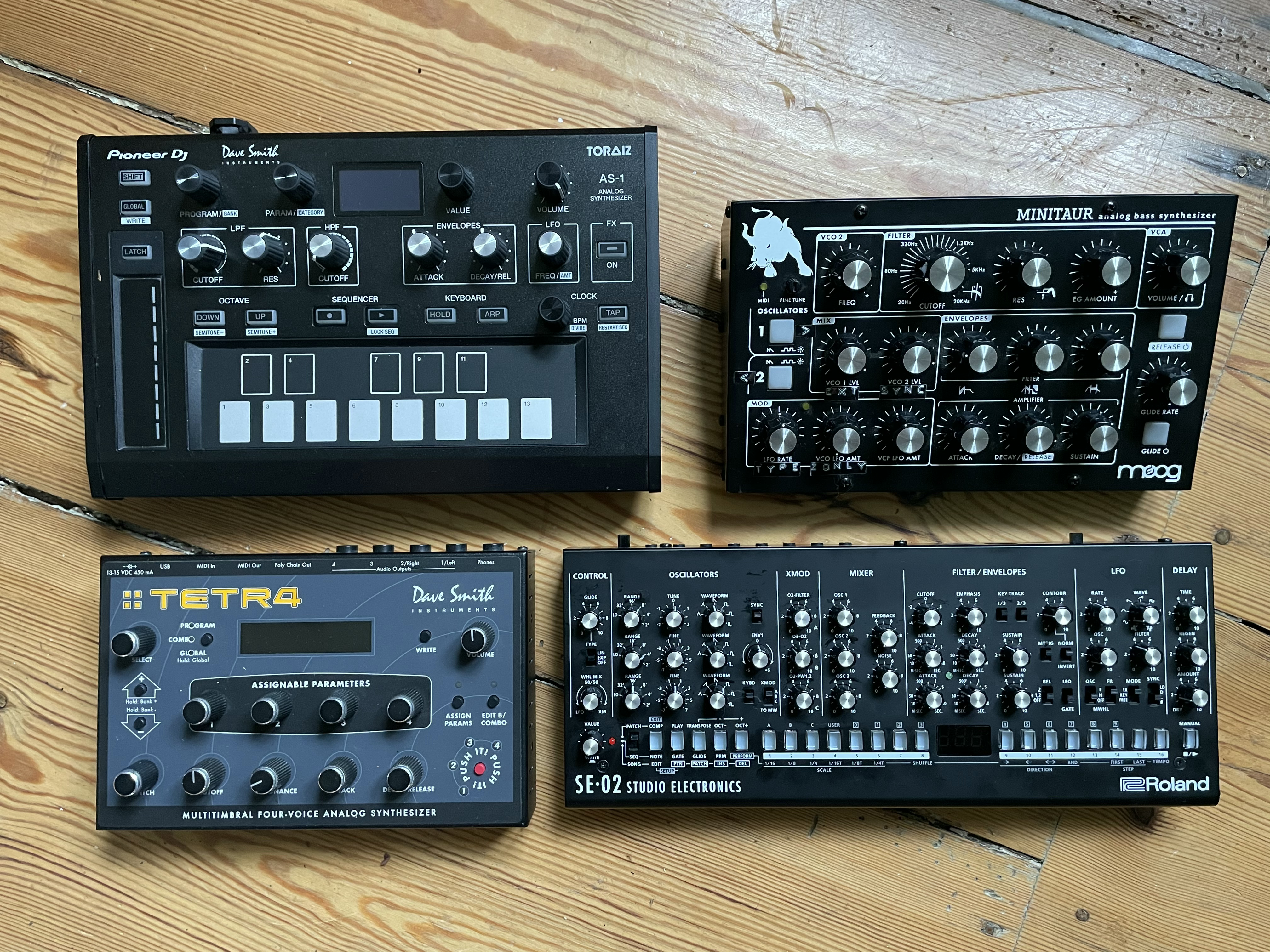 Long story short, the SE02 and AS1 sound incredible in different ways, and have very different UI philosophies, so much so that I’m likely to keep both depending on my needs (e.g. if I want to do a more live-evolving-sound-design during a set, SE02; if I need to keep things simple, predesign patches for the AS-1 and use the mod strip a lot). The Tetra’s out - didn’t like the sound. Minitaur I’ll probably keep for sentimental reasons.