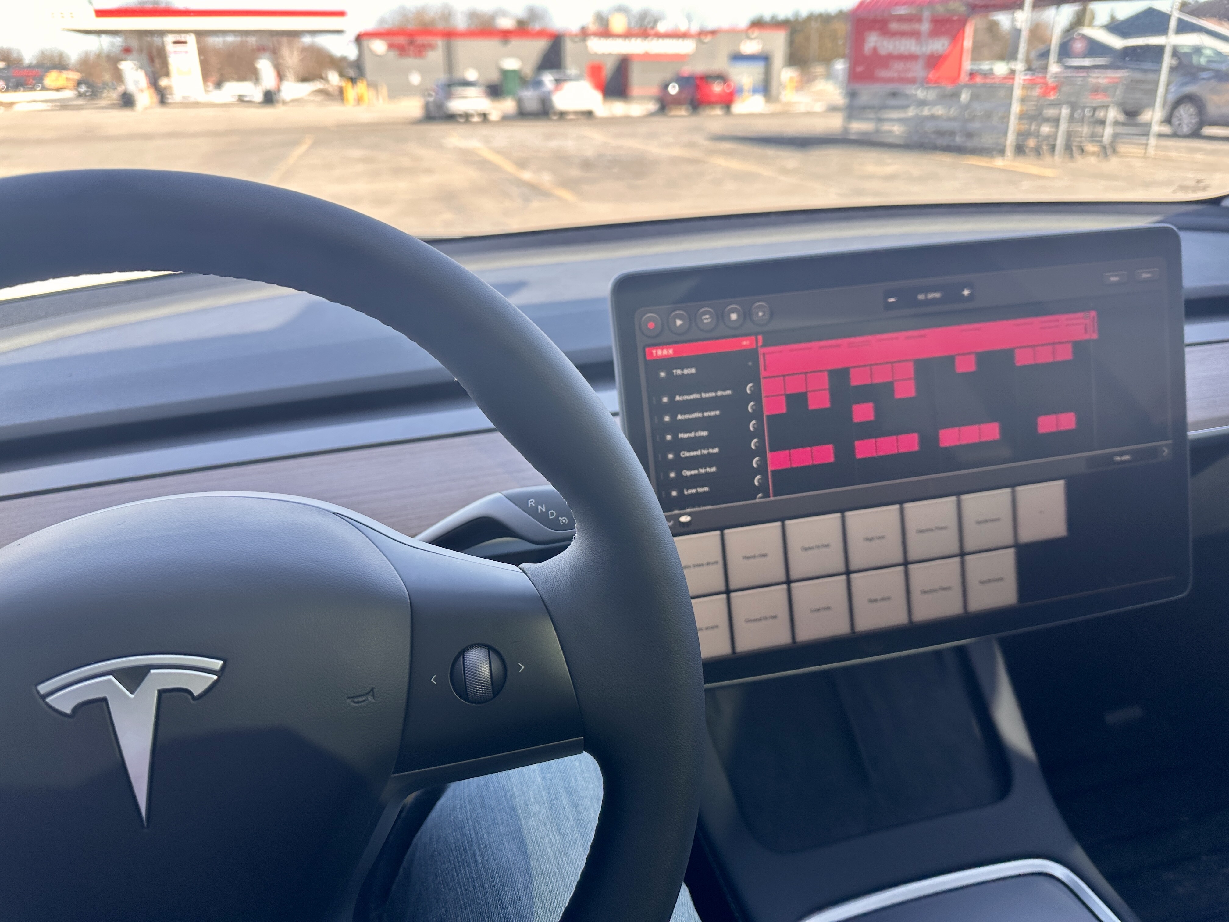 that sure is an expensive drum machine – at least it’s battery powered! How does one get a synth in their Tesla?
